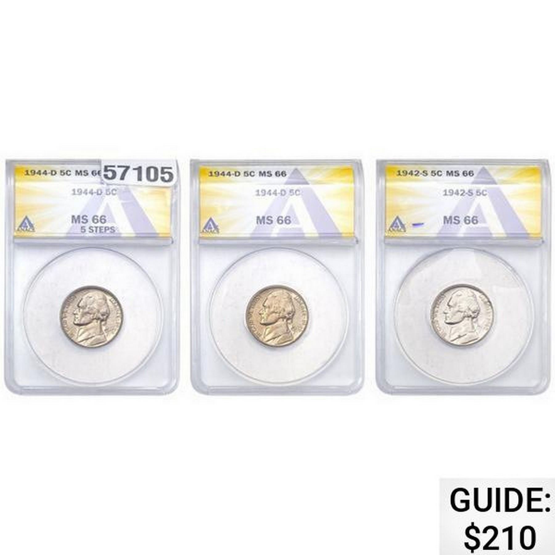 [3] 1942-1944 5C Jefferson ANACS MS66 5 Steps