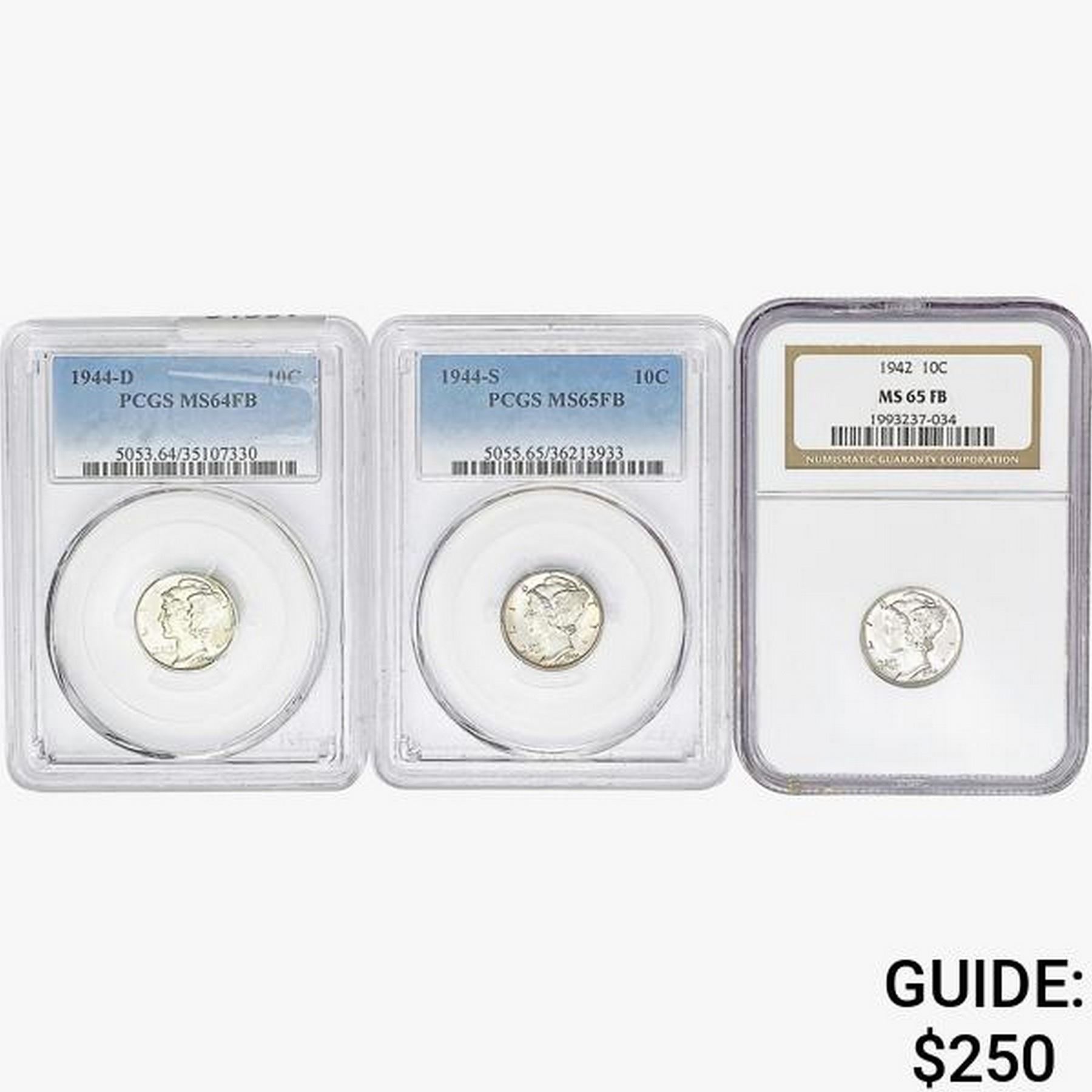 [3] 1942&1944 Mercury Silver Dime NGC/PCGS MS FB