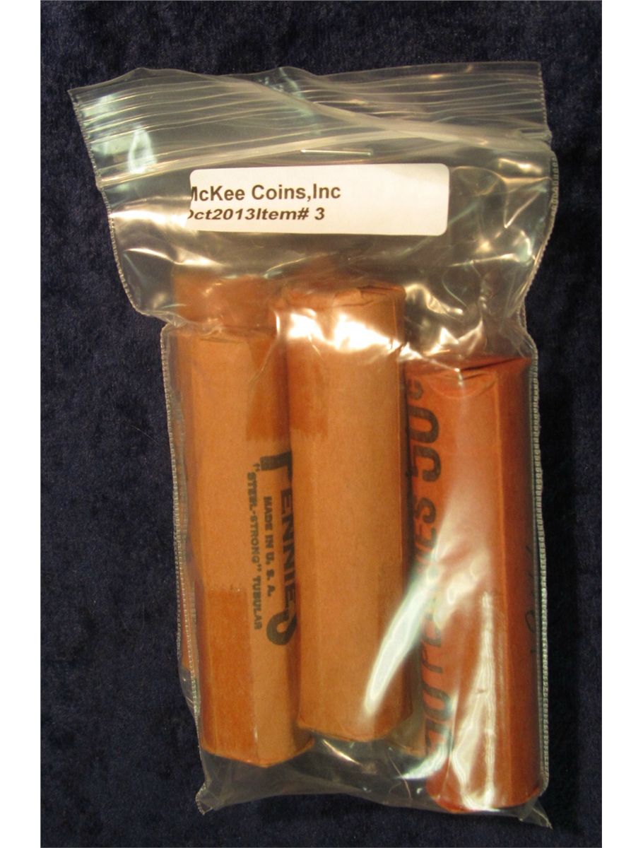 3. 1945 & 46 P, D, & S Solid Date Rolls of Lincoln Cents. Circulated. (6 rolls or $3.00 face value of Wheat Cents).