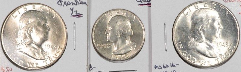 (3) 1948-P QUARTER, 1948 (P,D) HALF DOLLAR MS-63+