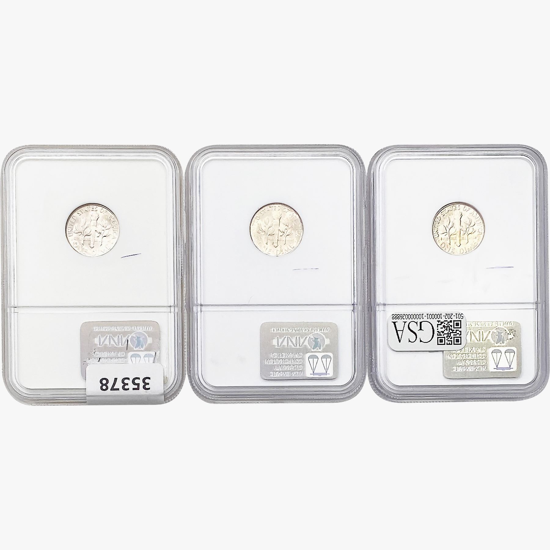 COINS AND CURRENCY LISTED IN GSA’S CATALOG AS GRADED AND ENCAPSULATED BY PCGS, NGC, ANACS, ICG, PCGS CURRENCY, PMG, PCGS BANKNOTE GRADING, CMC OR ANY OTHER THIRD-PARTY GRADING SERVICE ARE LIKEWISE SOLD “AS-IS” EXCEPT AS EXPRESSLY SET FORTH HEREIN. ALL THIRD-PARTY GRADING SERVICE GUARANTEES, INCLUDING AUTHENTICITY, ARE THE SOLE RESPONSIBILITY OF THE THIRD-PARTY GRADING SERVICE AND NOT WARRANTIES OR GUARANTEES OF GSA. BIDDERS SHOULD CONTACT THESE THIRD-PARTY GRADING SERVICES DIRECTLY WITH RESPECT TO ANY CLAIMS OR QUESTIONS THEY MAY HAVE CONCERNING THEIR GUARANTEES AND WARRANTIES. BIDDERS ACKNOWLEDGE AND AGREE THAT AUCTIONEER IS NOT BOUND BY OR LIABLE FOR ANY OPINION OR CERTIFICATION BY ANY THIRD-PARTY GRADING SERVICE. REMOVAL OF A PRODUCT FROM ITS PROTECTIVE CASING OR HOLDER OR ALTERATION OF ANY COIN HOLDER WAIVES ALL RIGHTS CONCERNING THE PRODUCT CONTAINED THEREIN.