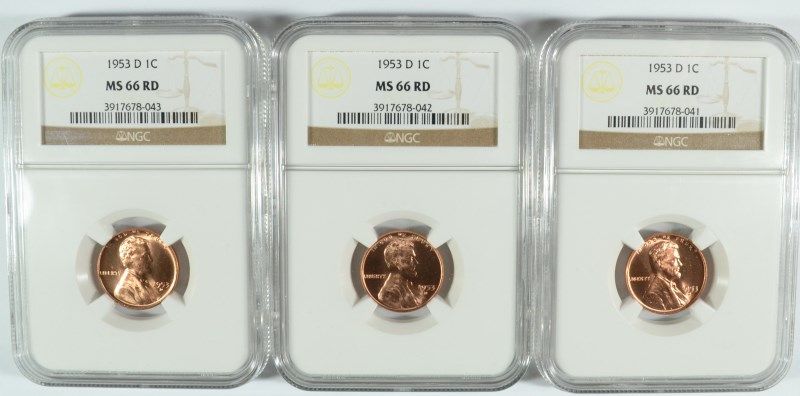( 3 ) 1953-D LINCOLN CENTS, NGC MS-66 RED GEMS!