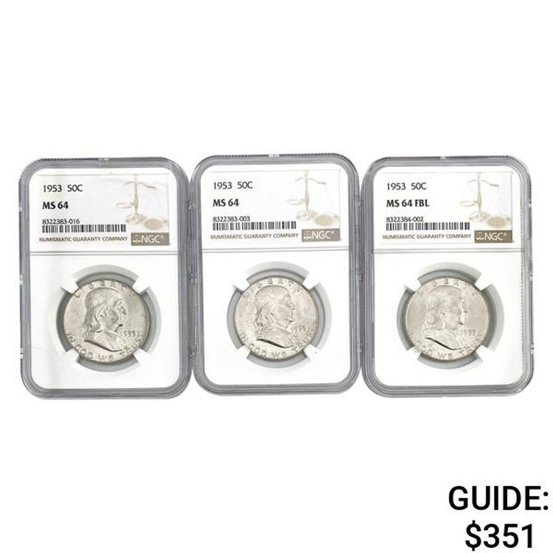 [3] 1953 Franklin Half Dollar NGC MS64/64FBL