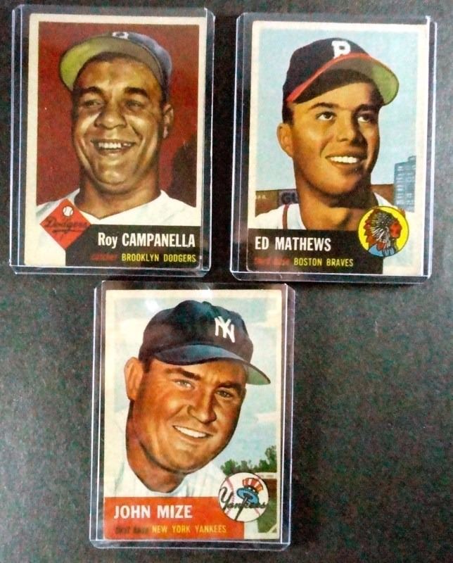 3 - 1953 TOPPS STARS, CAMPANELLA VGEX+, MATHEWS VGEX, MIZE VGEX. NICE ORIGINAL