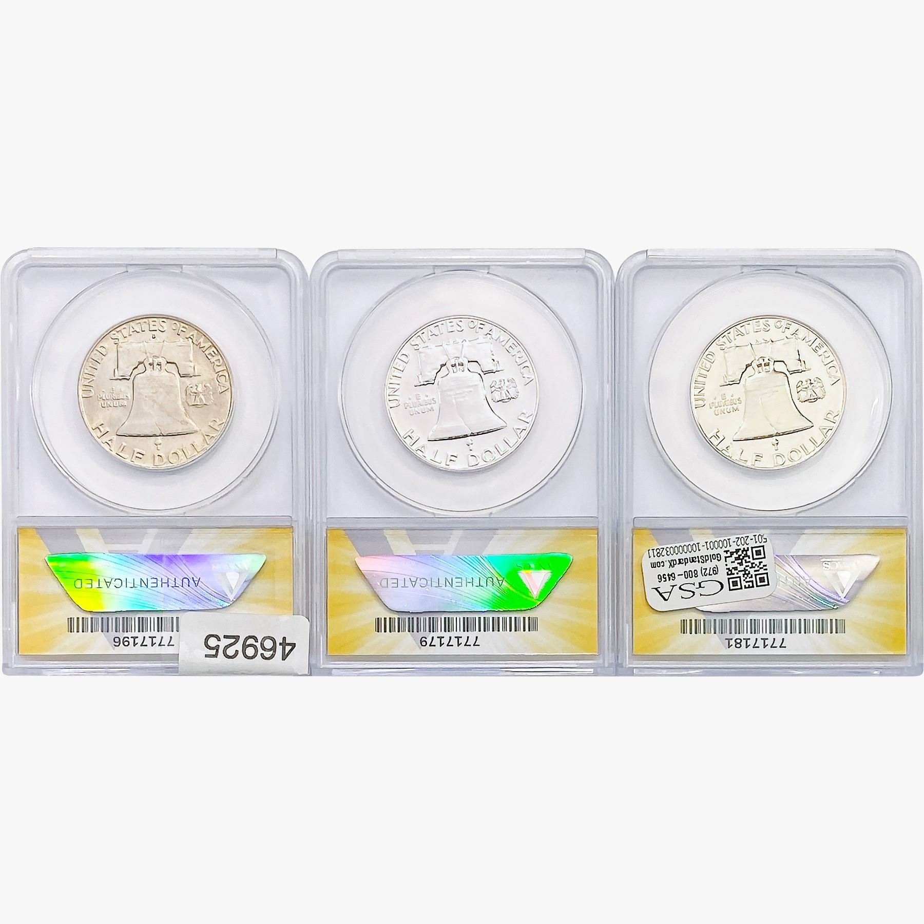 [3] 1954-1959 Franklin Half Dollar ANACS MS/PF63/66 PF, FBL