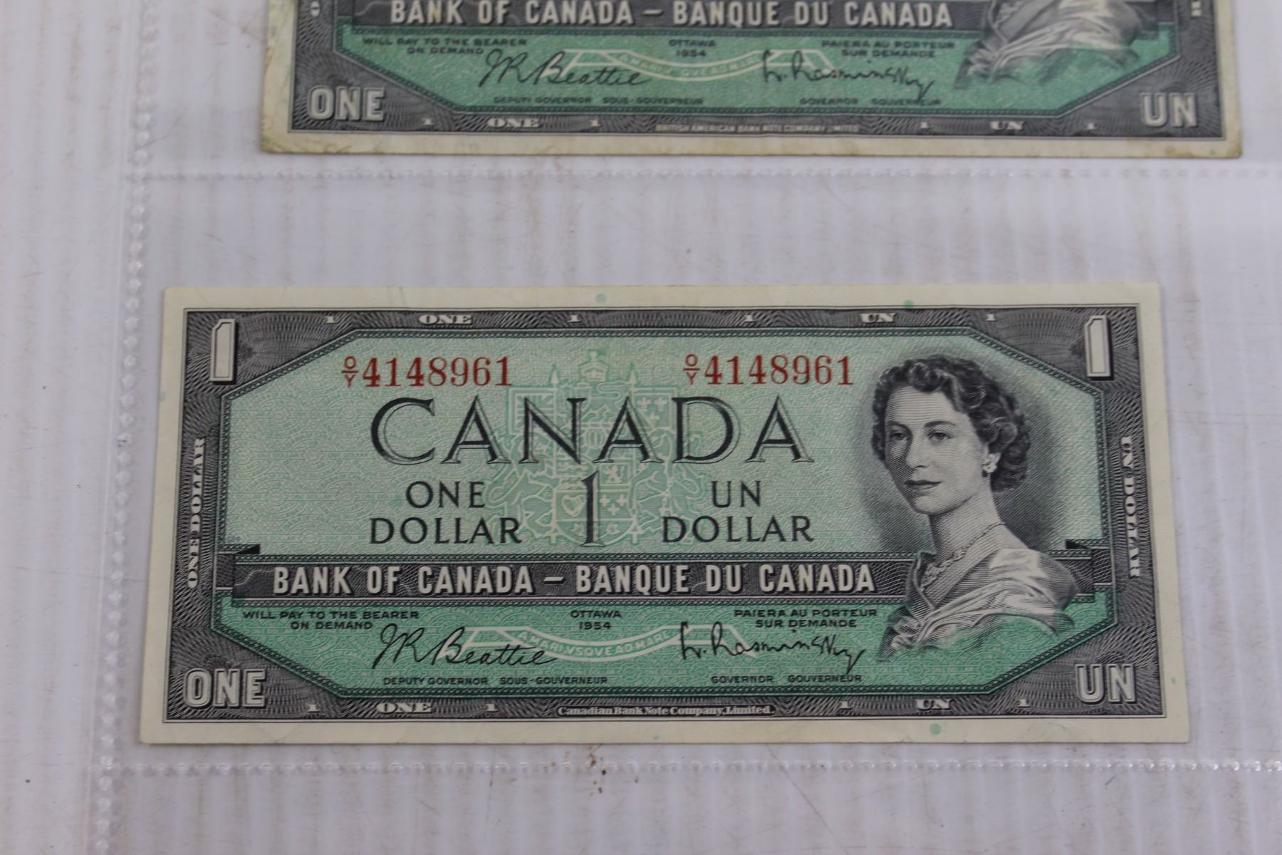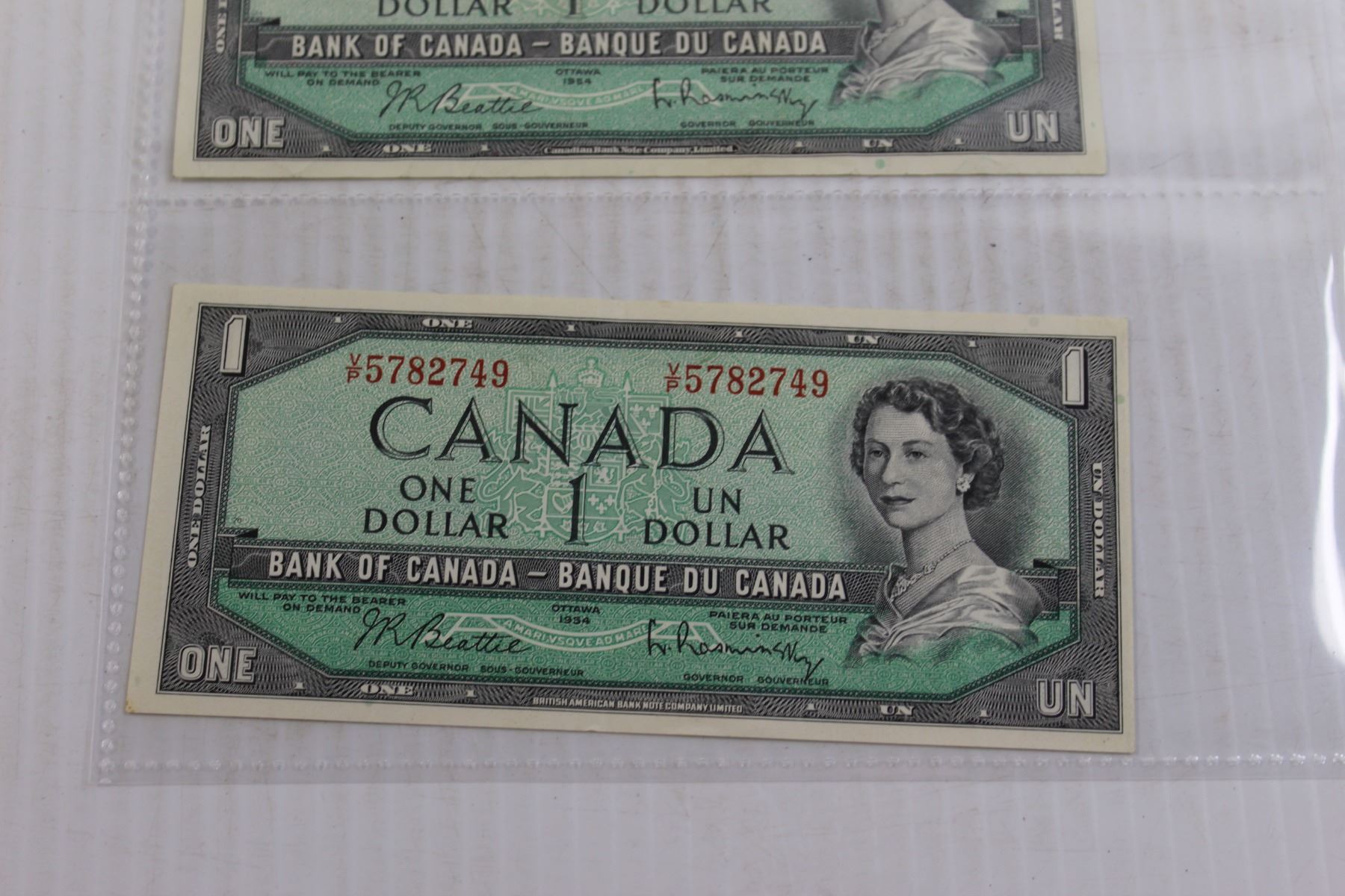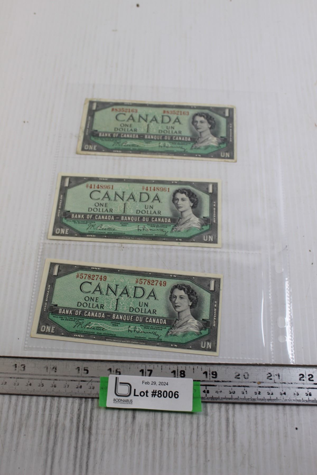 (3) 1954 Centennial Canadian $1 Bills with Serial Number