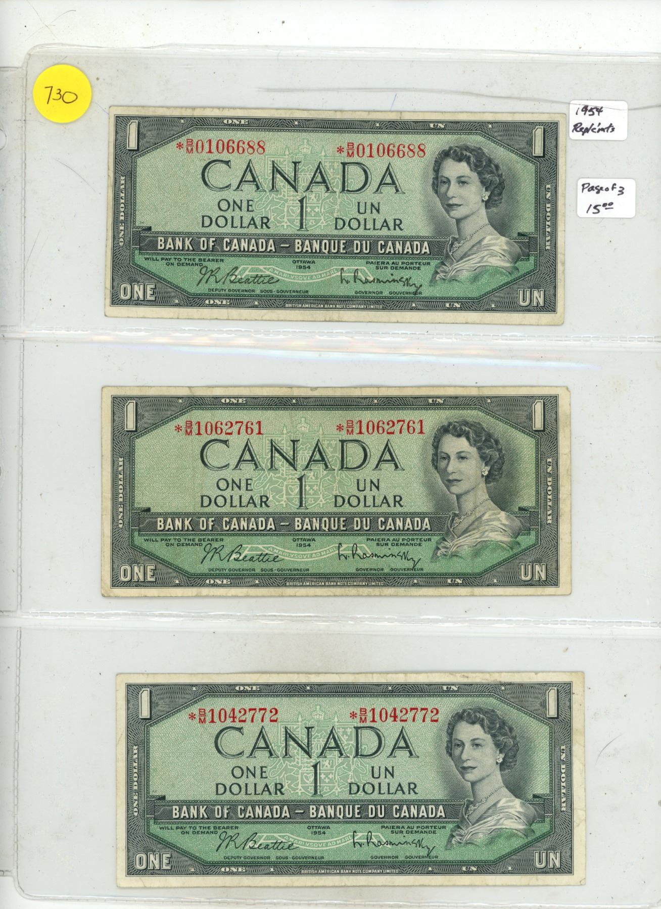 (3) 1954 One Dollar (Bank of Canada) (Replacemenent Notes)