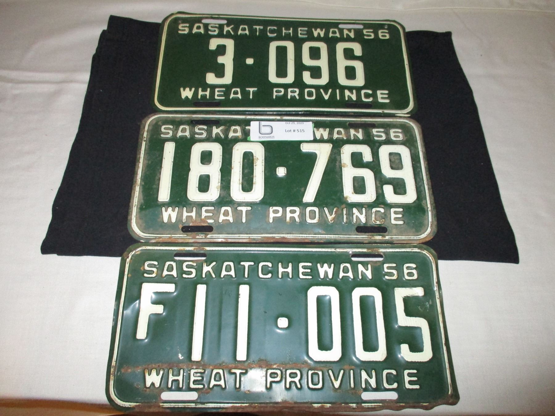 3 1956 Saskatchewan License Plates