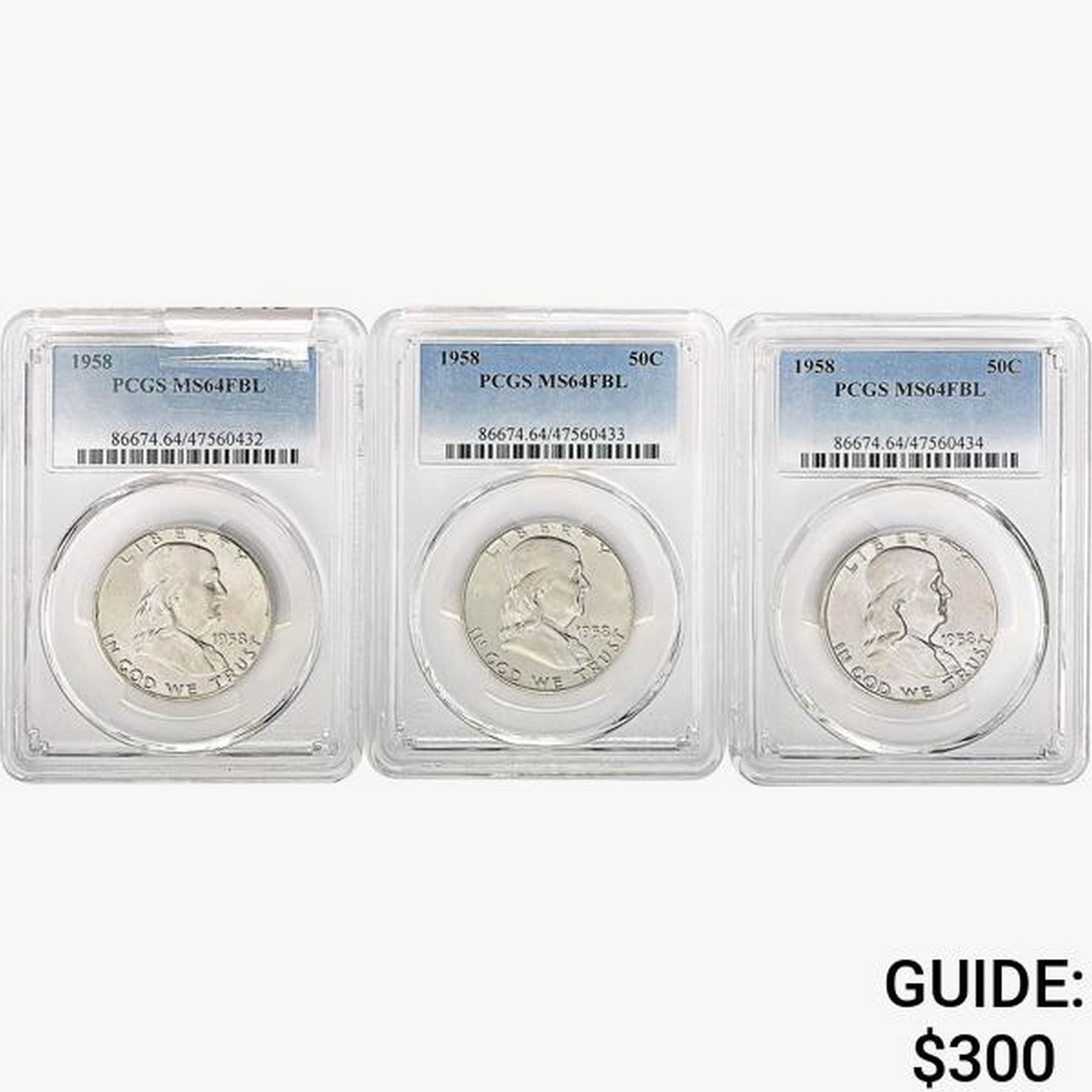 [3]1958 Franklin Half Dollar PCGS MS64 FBL