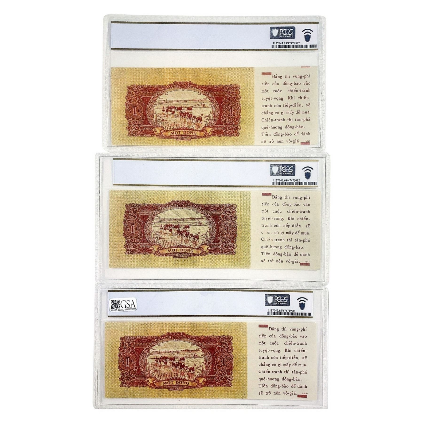 [3] 1958 M Viet Nam 1 Dong Propaganda Note PCGS 63-65