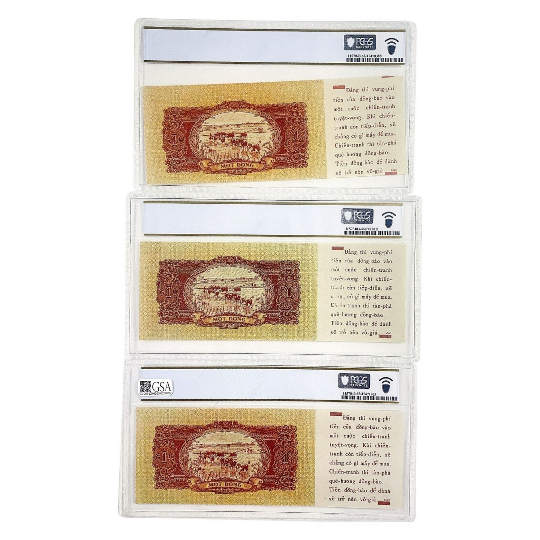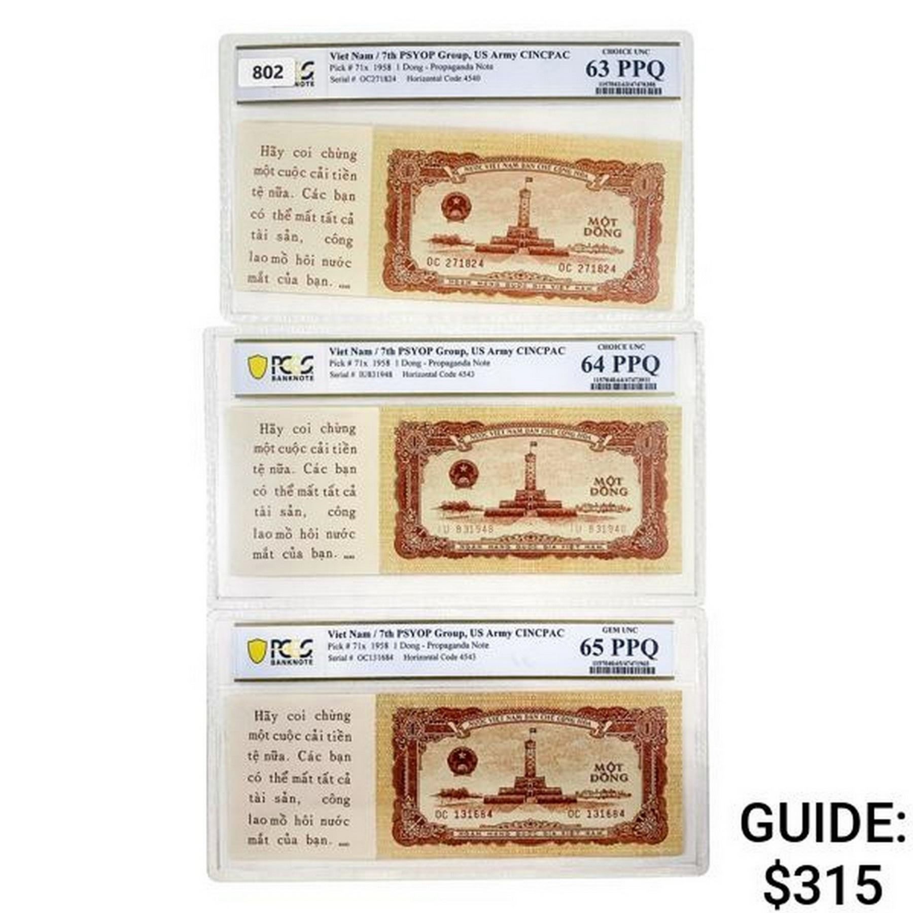 [3] 1958 M Viet Nam 1 Dong Propaganda Note PCGS 63-65