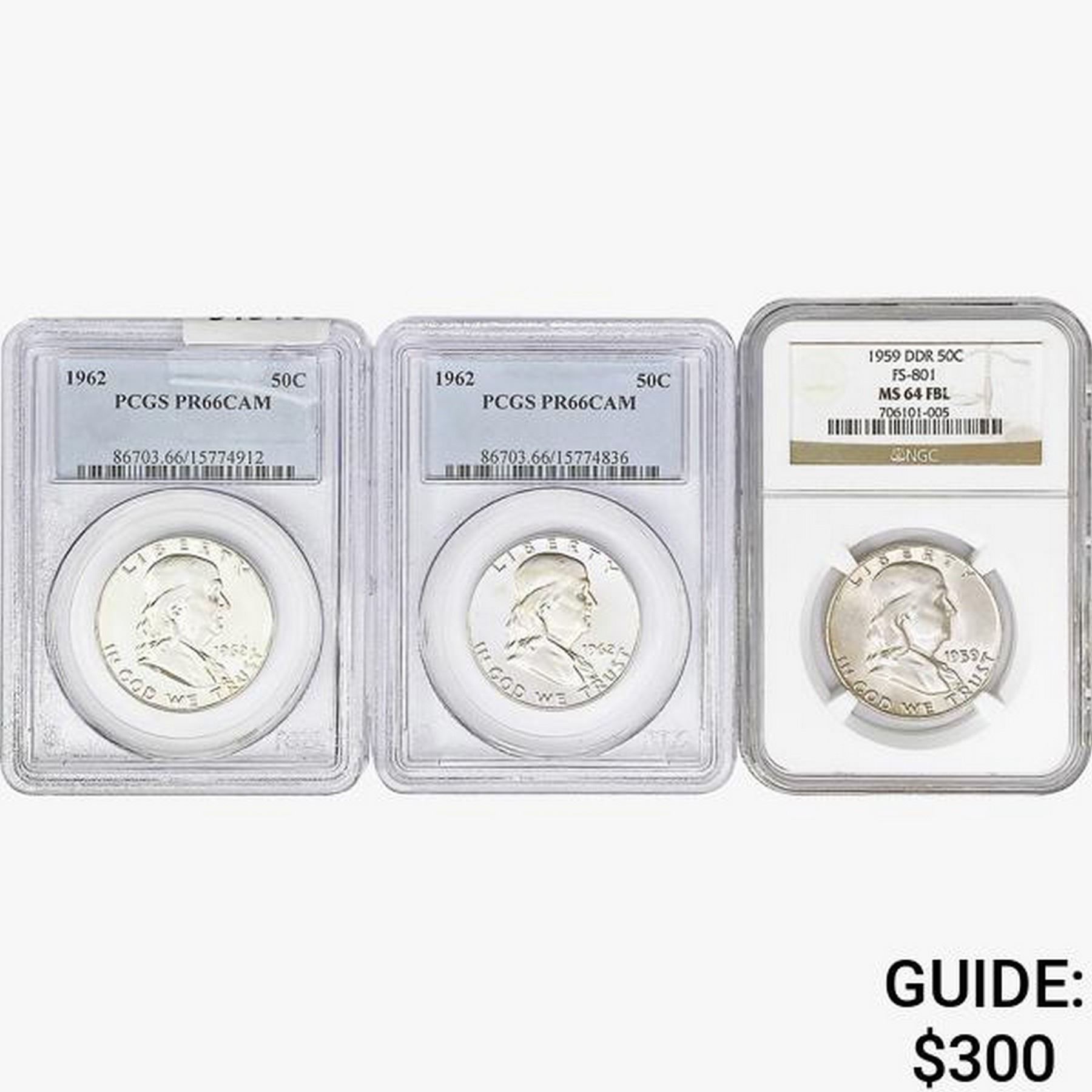 [3] 1959&1962 Franklin Half Dollar NGC/PCGS MS/PR
