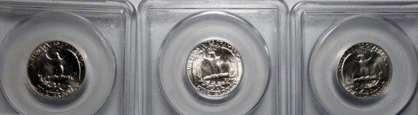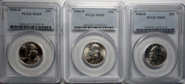 3 1960-D WASHINGTON QUARTERS PCGS MS-65
