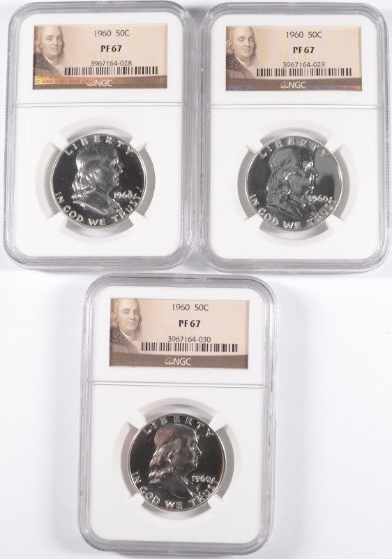 ( 3 ) 1960 FRANKLIN HALF DOLLAR, NGC PROOF-67