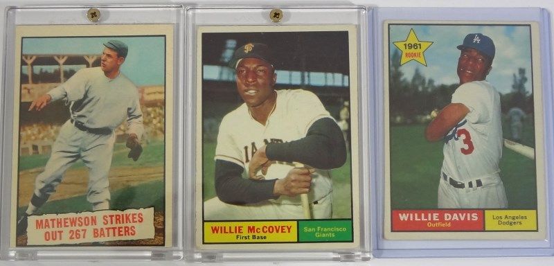 3 - 1961 TOPPS #408 MATHEWSON, #506 DAVIS, #517 McCOVEY NICE EX