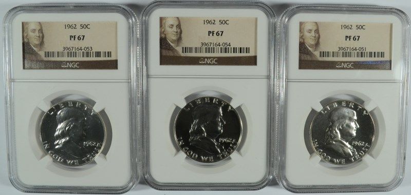 ( 3 ) 1962 FRANKLIN HALF DOLLAR, NGC PROOF-67