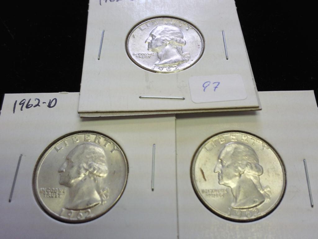 3-1962 WASHINGTON SILVER QUARTERS (UNC)