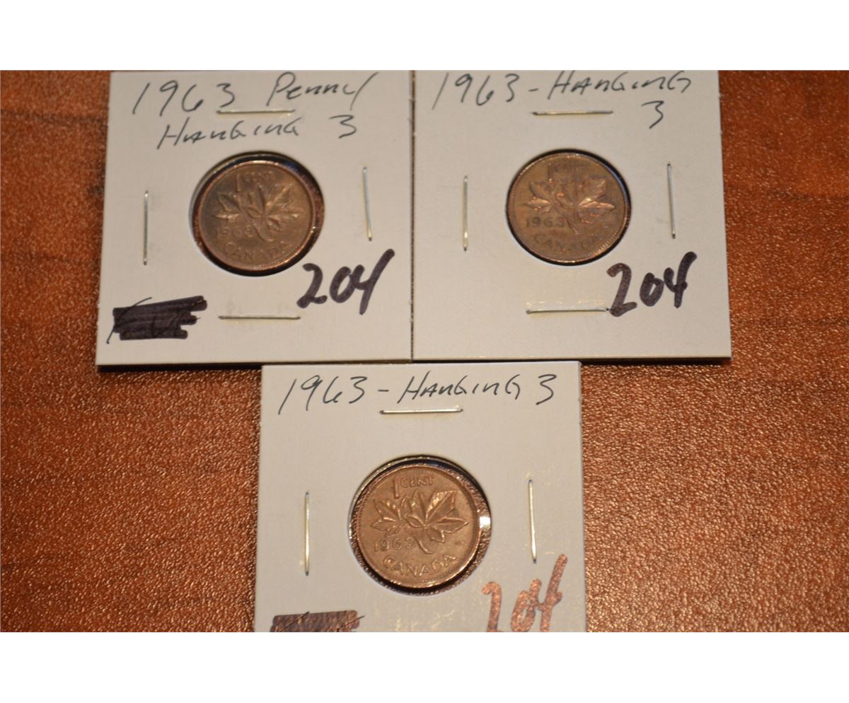 (3) 1963 Canada 1-Cent (Hanging 3's)