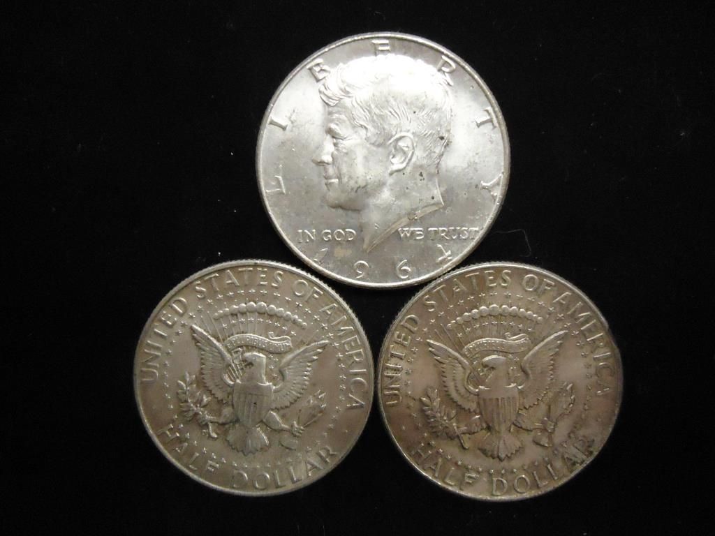 3-1964 90% SILVER KENNEDY HALF DOLLARS