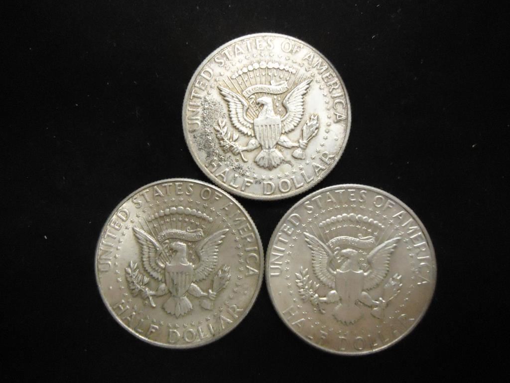 3-1964 90% SILVER KENNEDY HALF DOLLARS