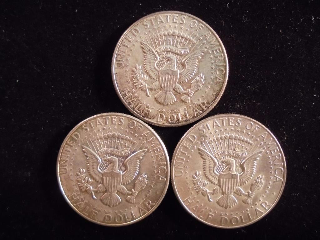 3-1964-90% SILVER KENNEDY HALF DOLLARS
