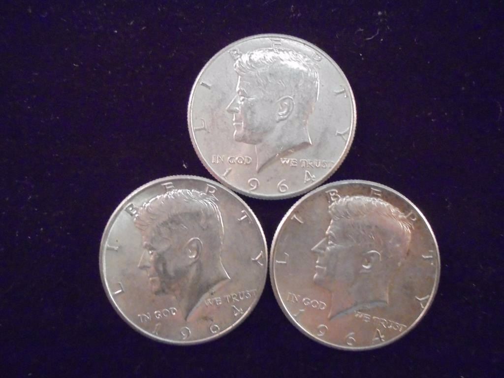3-1964 90% SILVER KENNEDY HALF DOLLARS