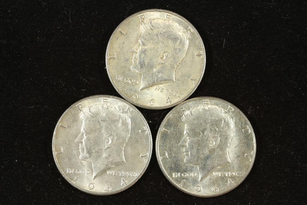 3-1964 90% SILVER KENNEDY HALF DOLLARS