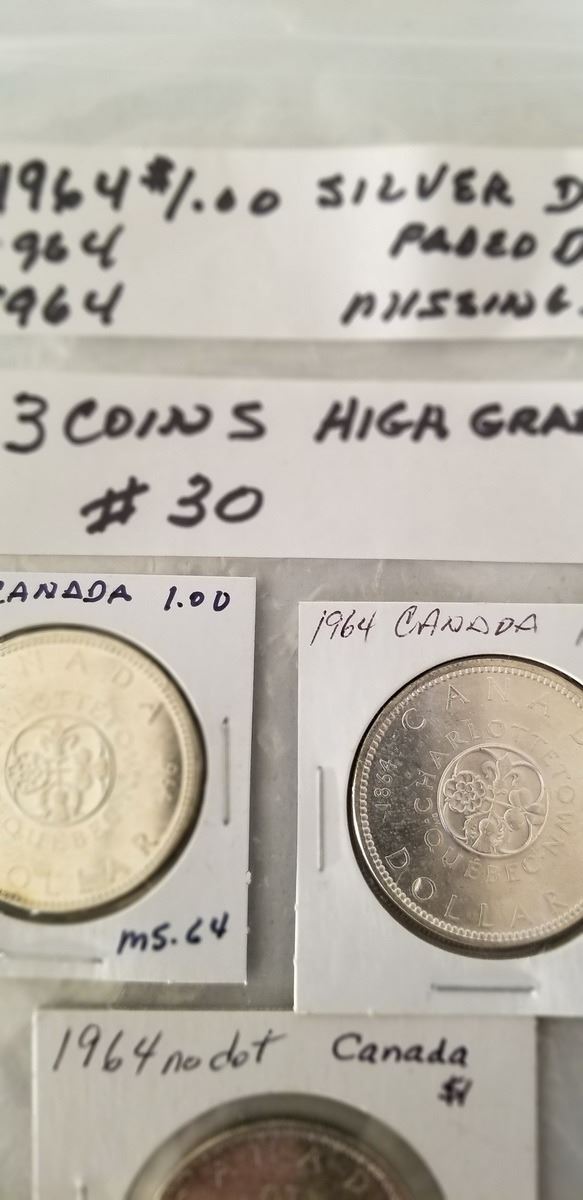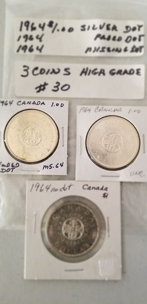 3 1964 Silver Dollars hard to find no dot, faded dot, 1 with dot