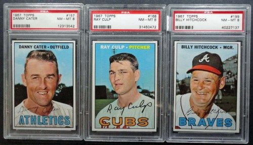 3 - 1967 TOPPS BASEBALL PSA NM - MT 8 #199, #168, #157
