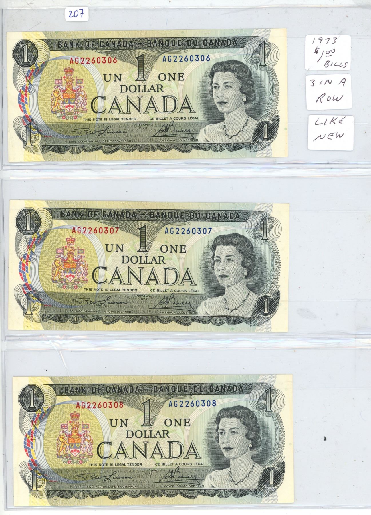 3- 1973 1 Dollar Bills 3 Serial Numbered Bills in a Row- 3 bills like new