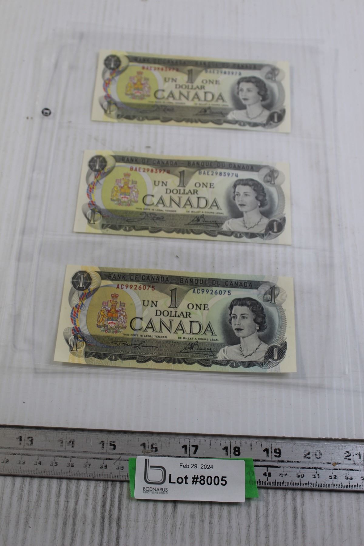 (3) 1973 Uncirculated Sequential $1 Canadian Bills