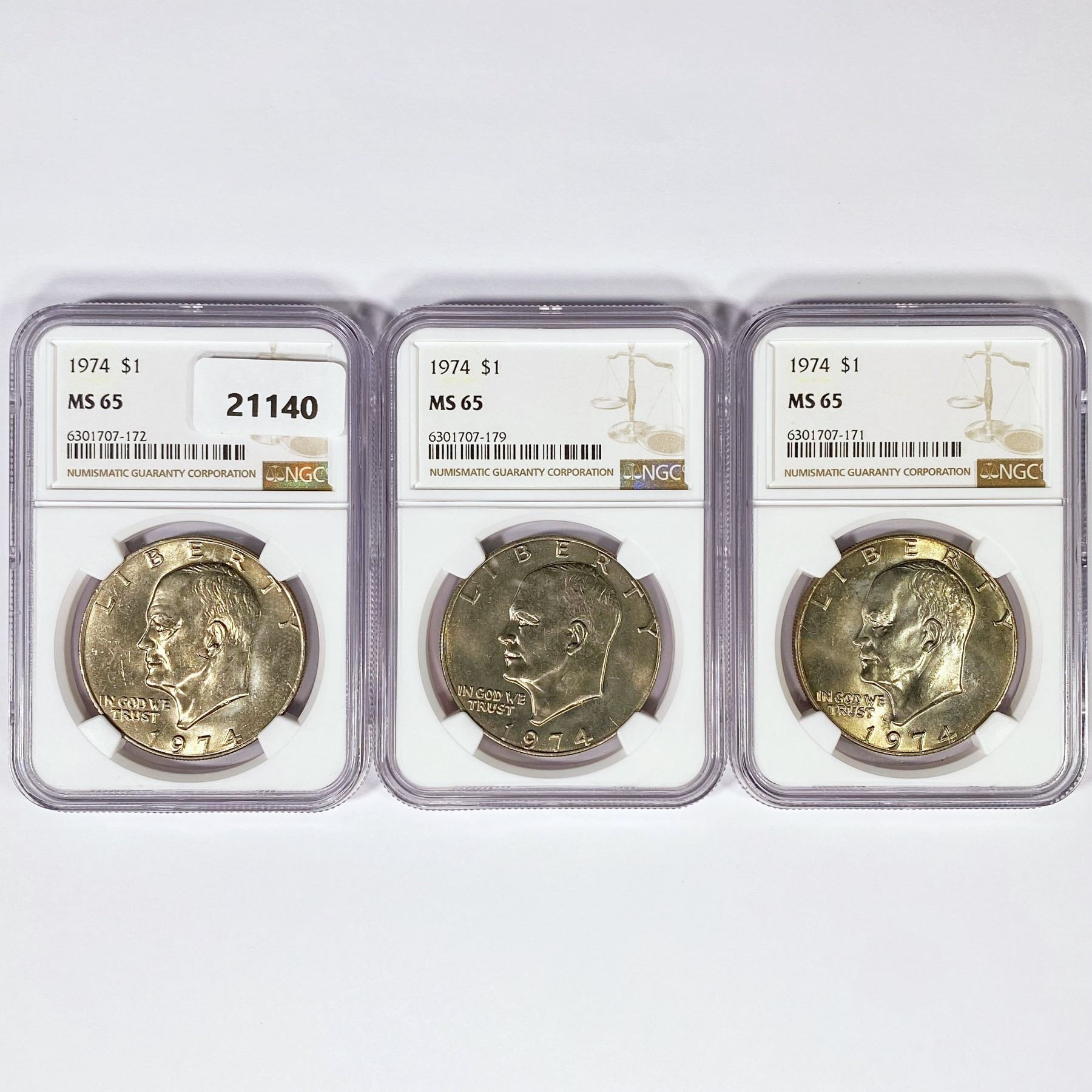 (3) 1974 Eisenhower Silver Dollar NGC MS65