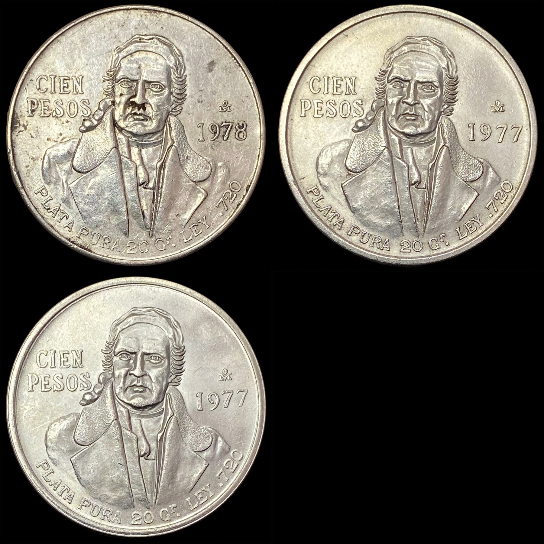 [3]1977-1978 Mexico Silver 100 Pesos CLOSELY UNCIRCULATED