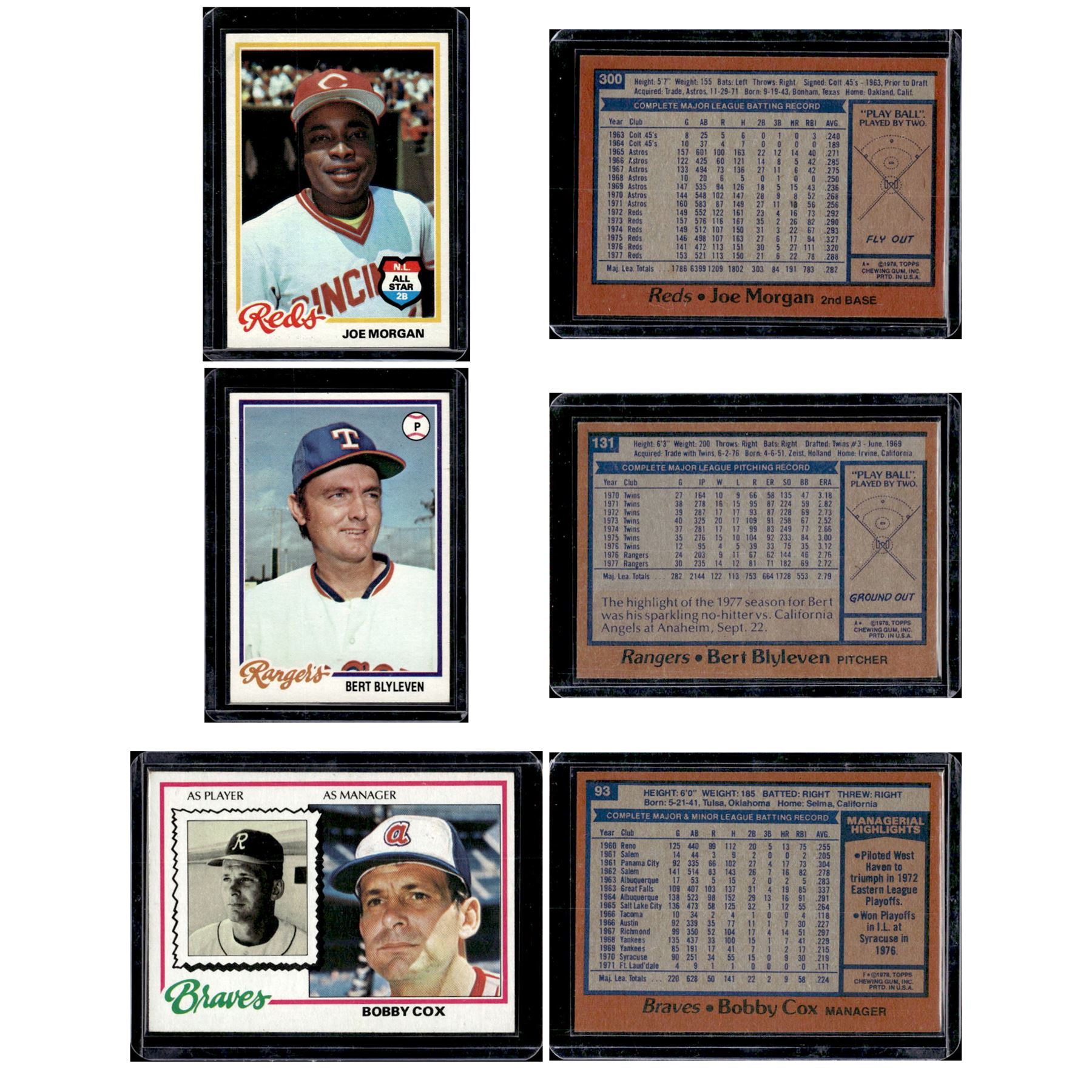 3 1978 Topps Baseball. Morgan, Blyleven, Cox