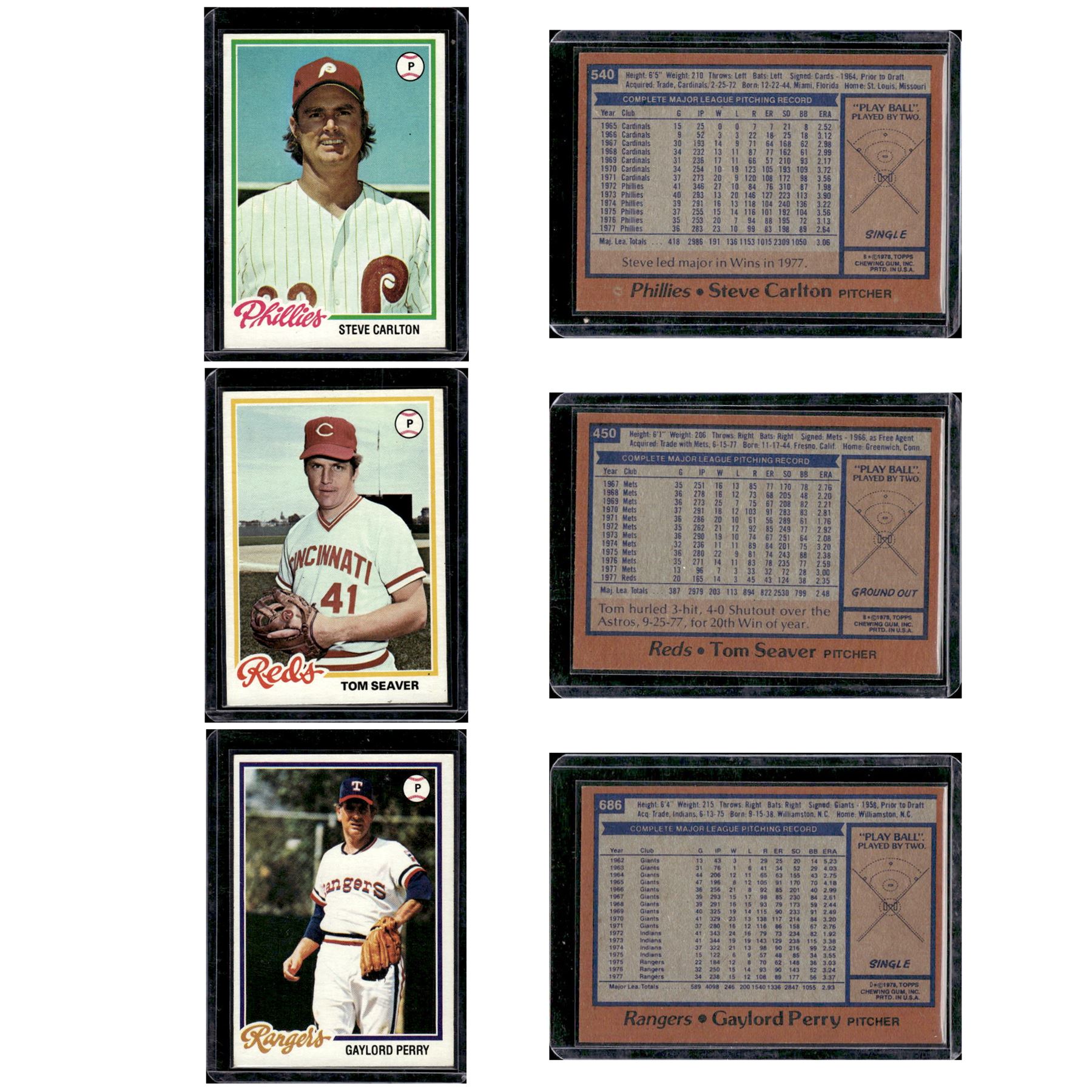 3 1978 Topps Cards. Carlton, Seaver, Perry