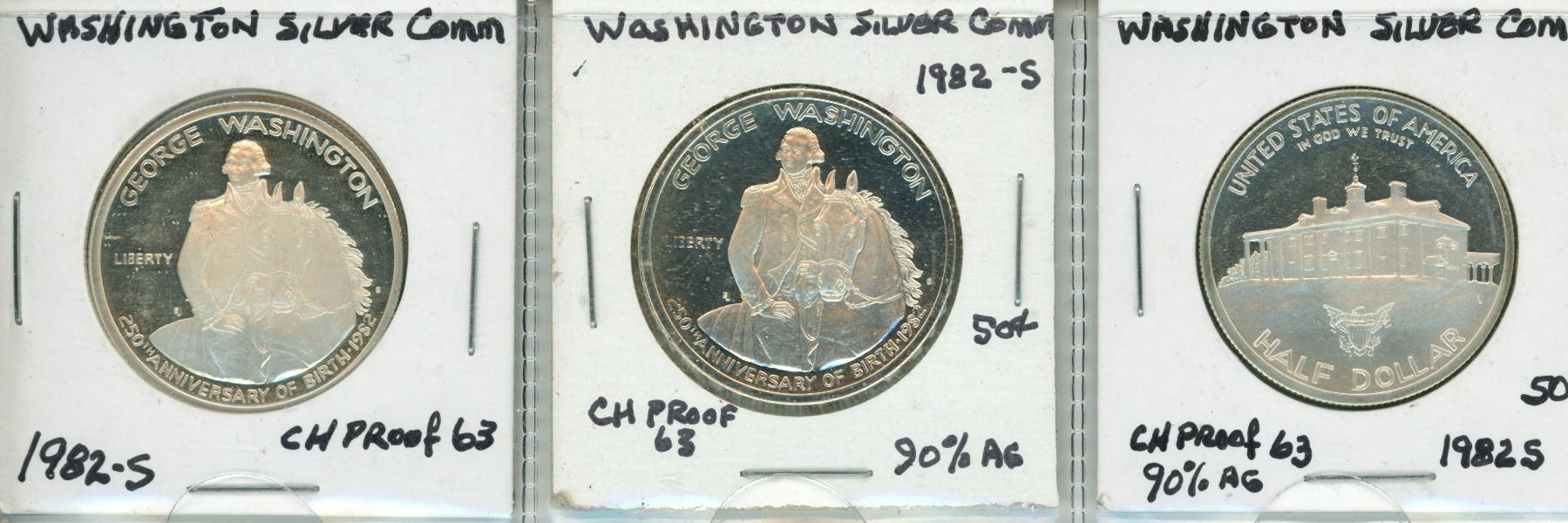3 1982S silver Washington commemorative half dollars