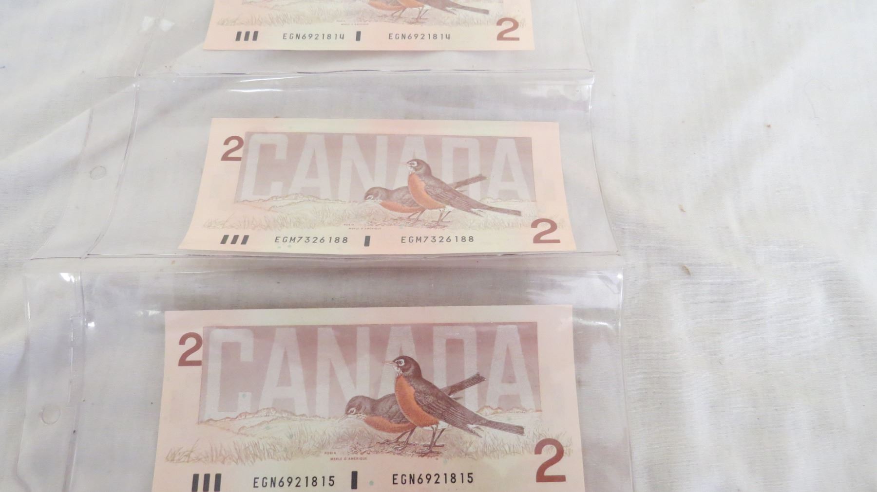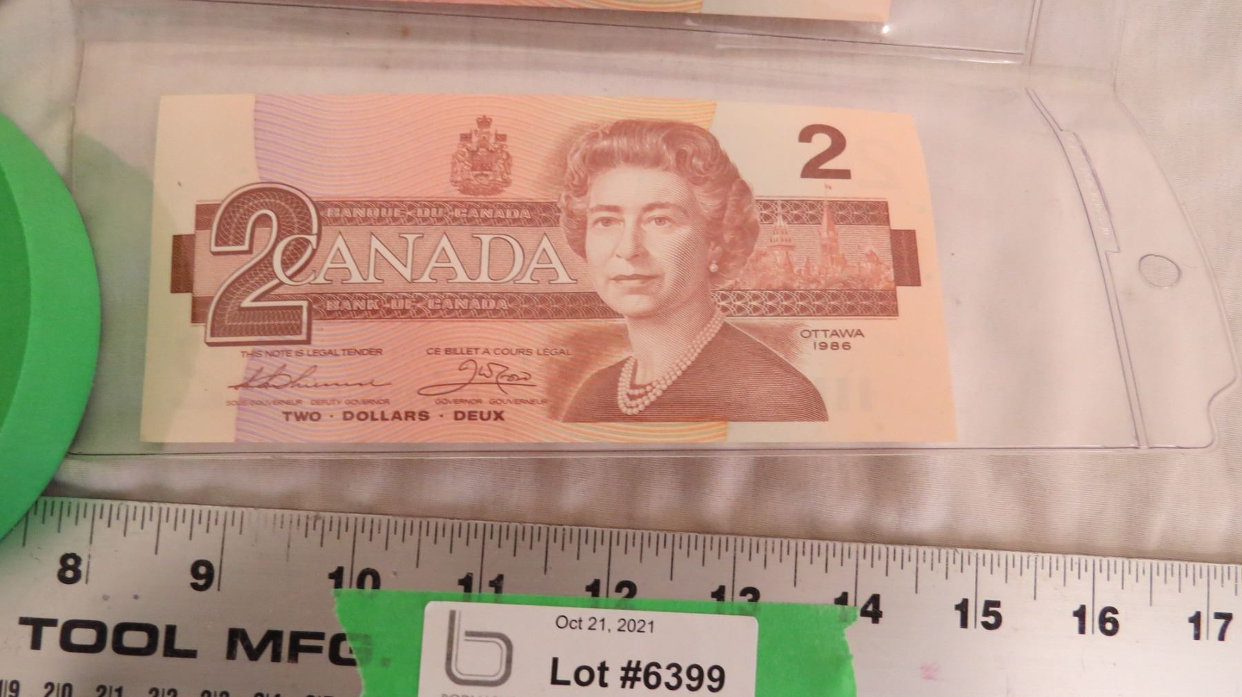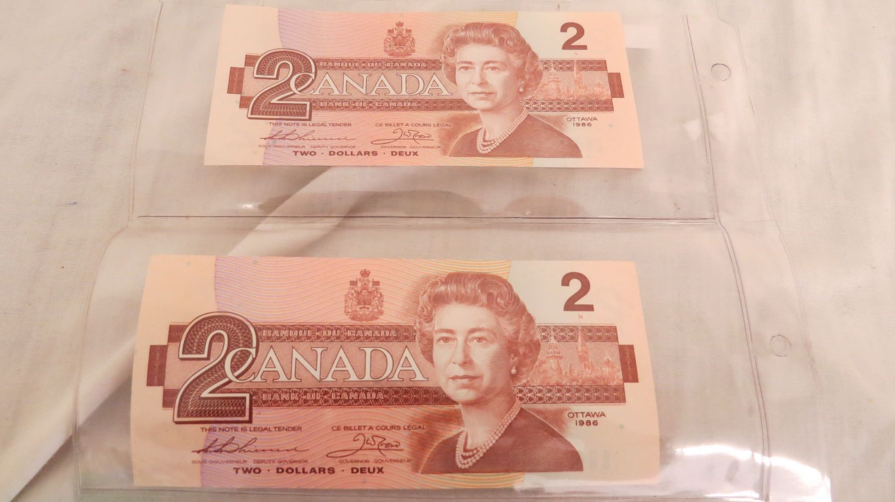 (3) 1986 2 dollar bills (2 are consecutive numbers)