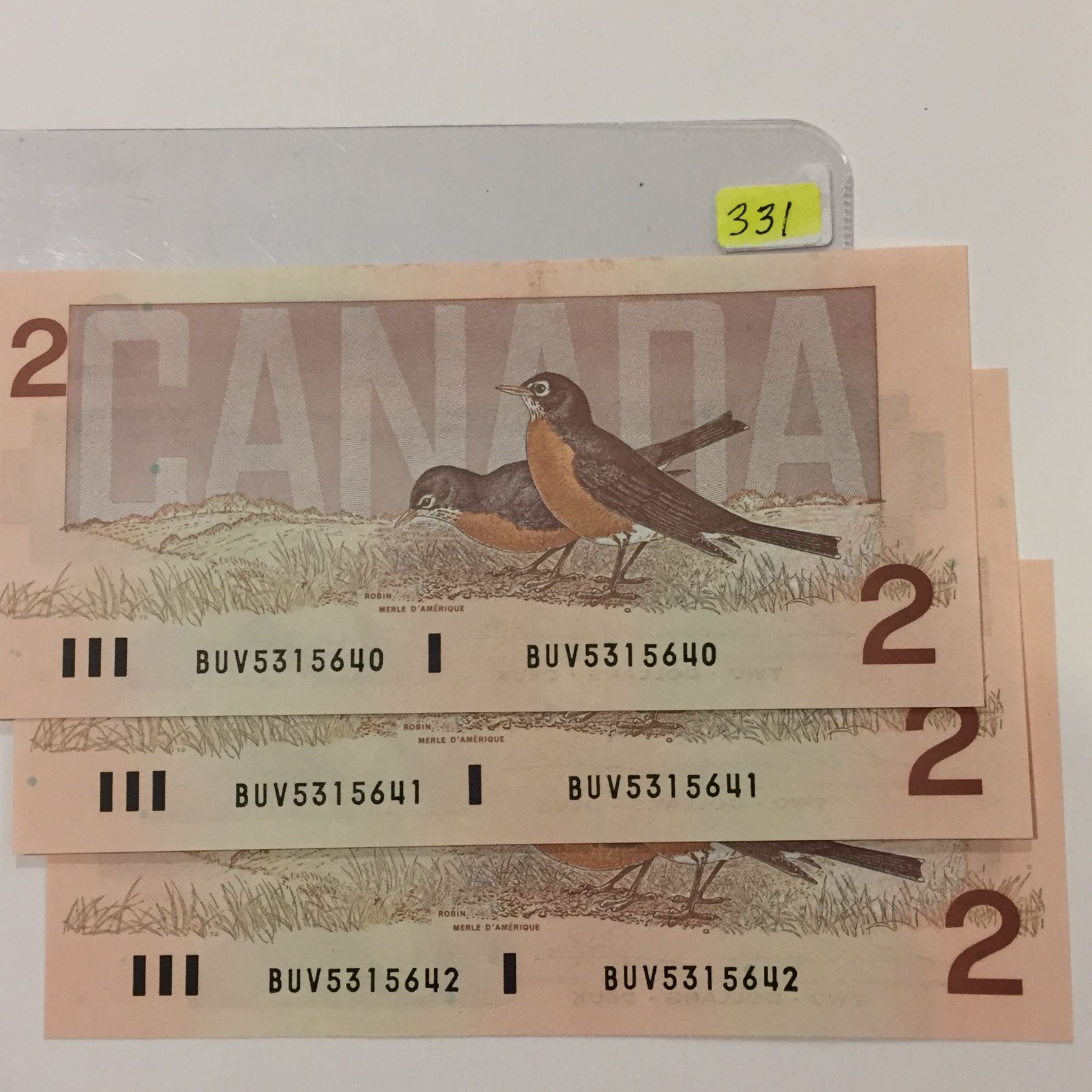 3 - 1986 'Bird Series' Two Dollar Bills - Thiessen/Crow - Consecutive - Uncirc.