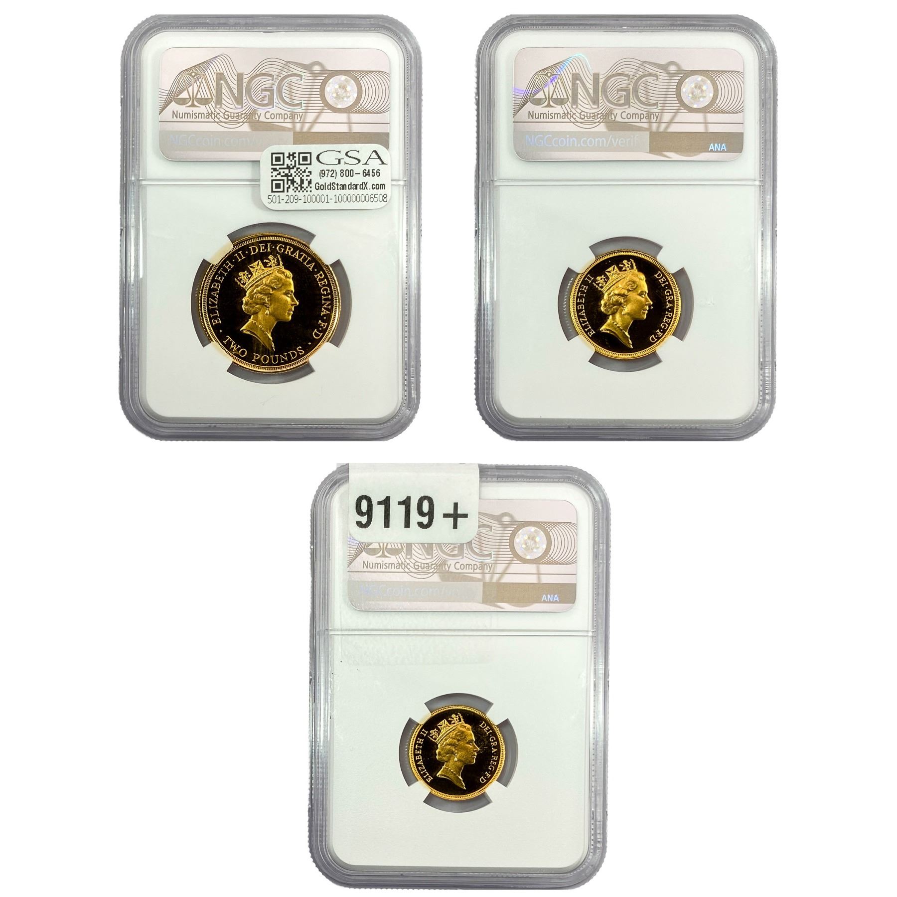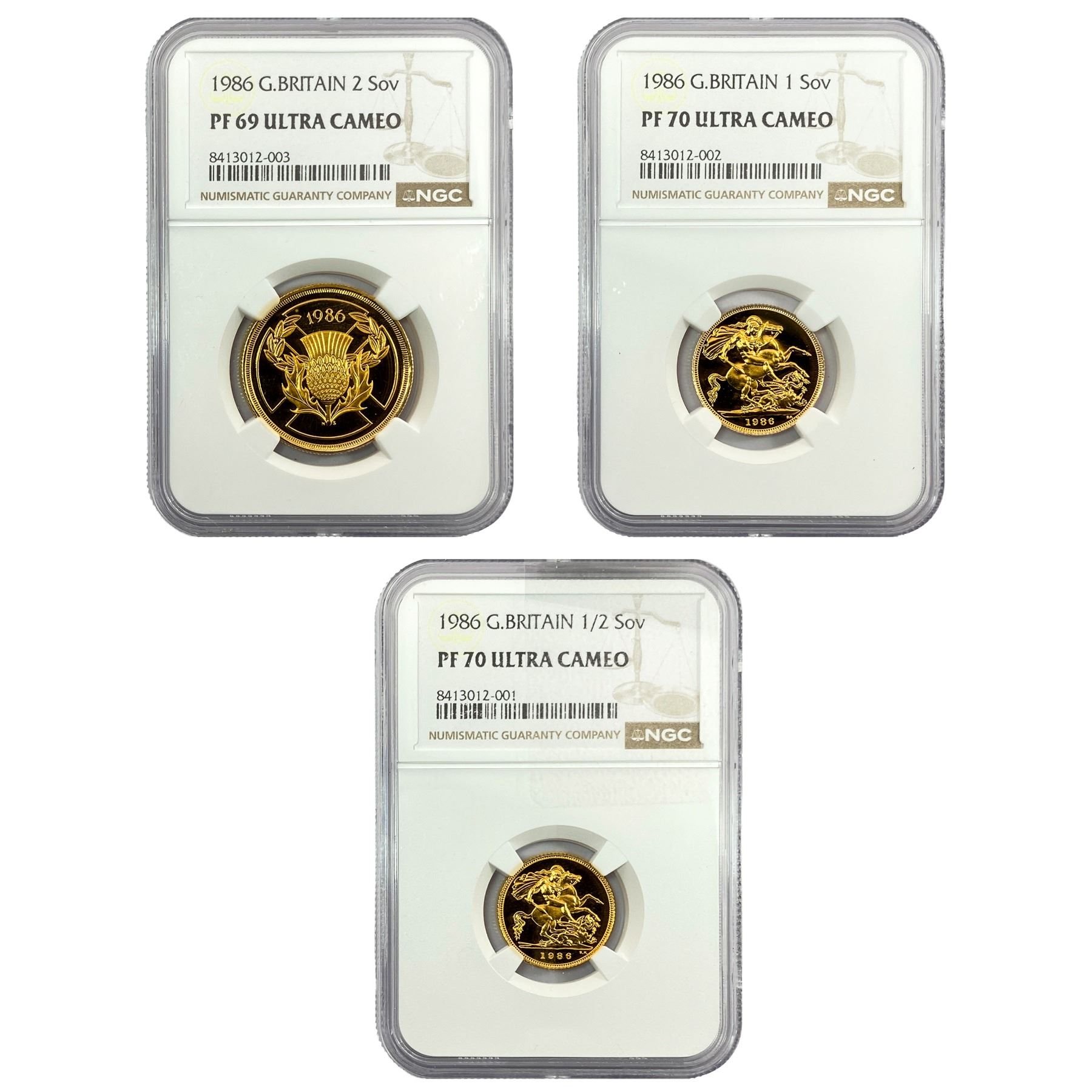 [3]1986 G. Britain Gold 1/2, 1, & 2 Sovereign NGC PF70 UC
