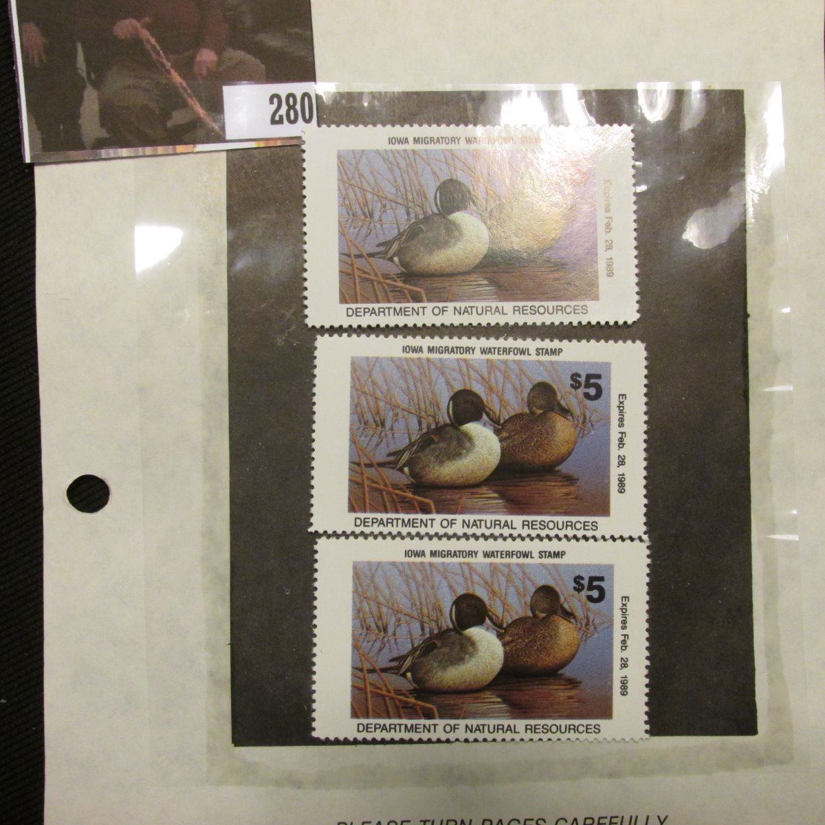 (3) 1988 IA17 Iowa $5 Migratory Waterfowl Stamps. All are unsigned and unused, excellent condition.