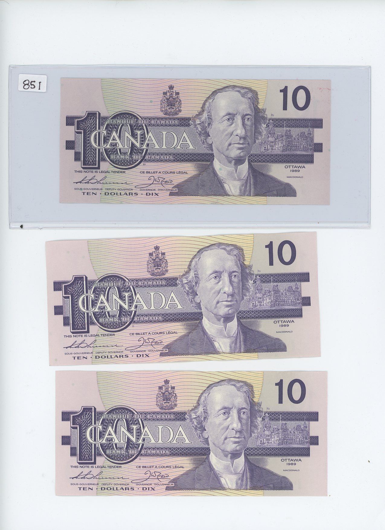 (3) 1989 $10.00 BILLS BETTER GRADE