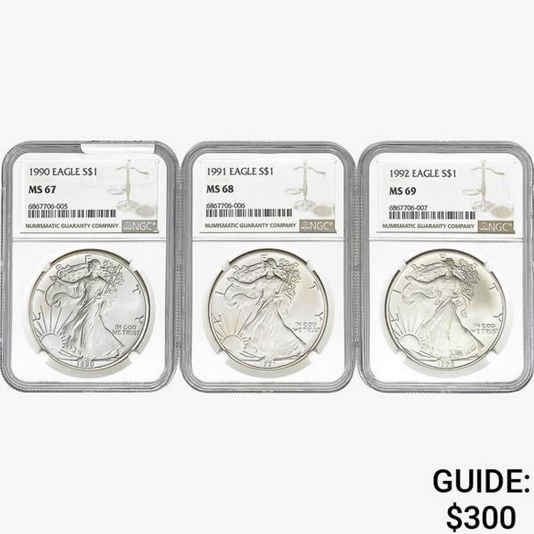 [3]1990-1992 Silver Eagle NGC MS67-69