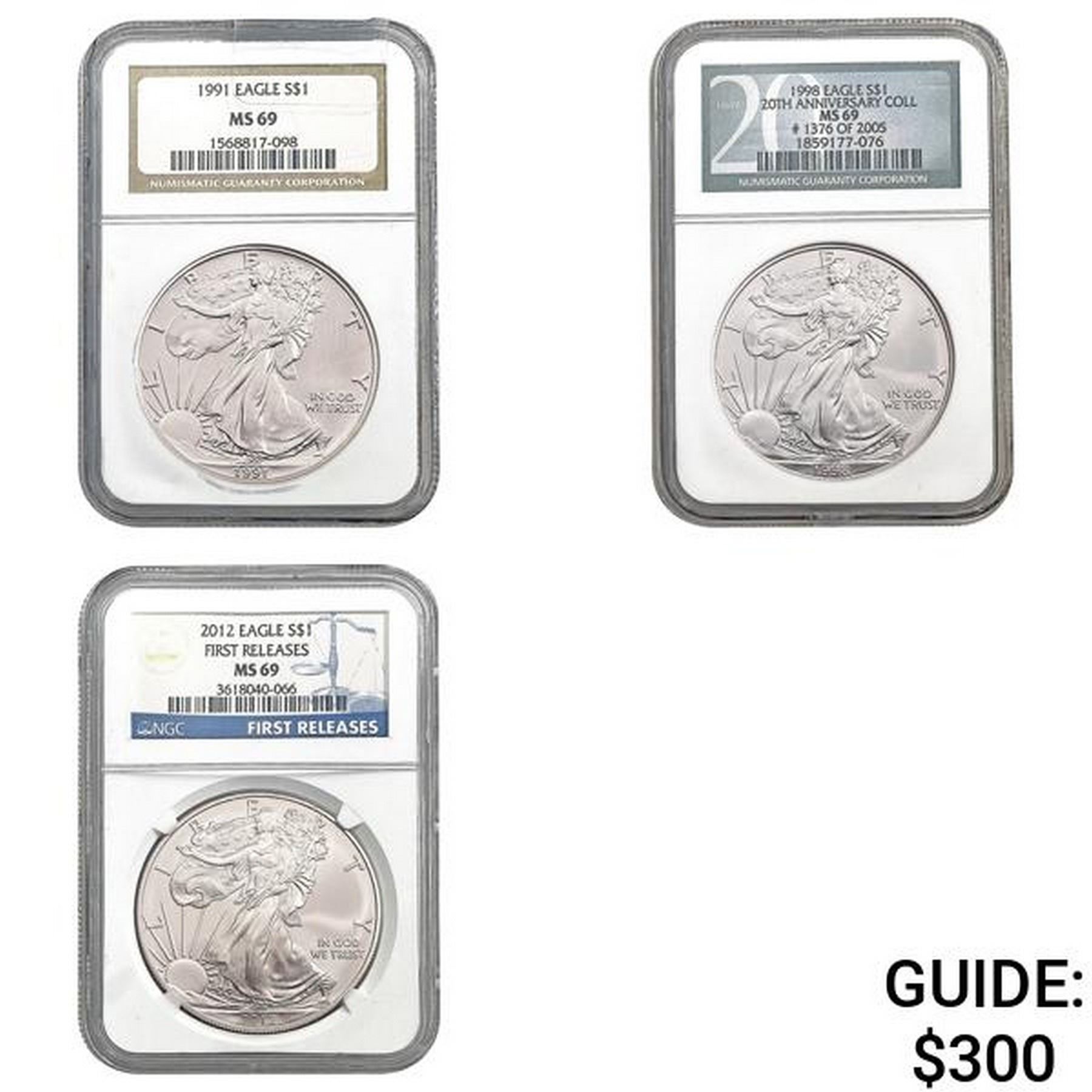 [3] 1991 -2012 Am Silver Eagles $1 NGC MS69