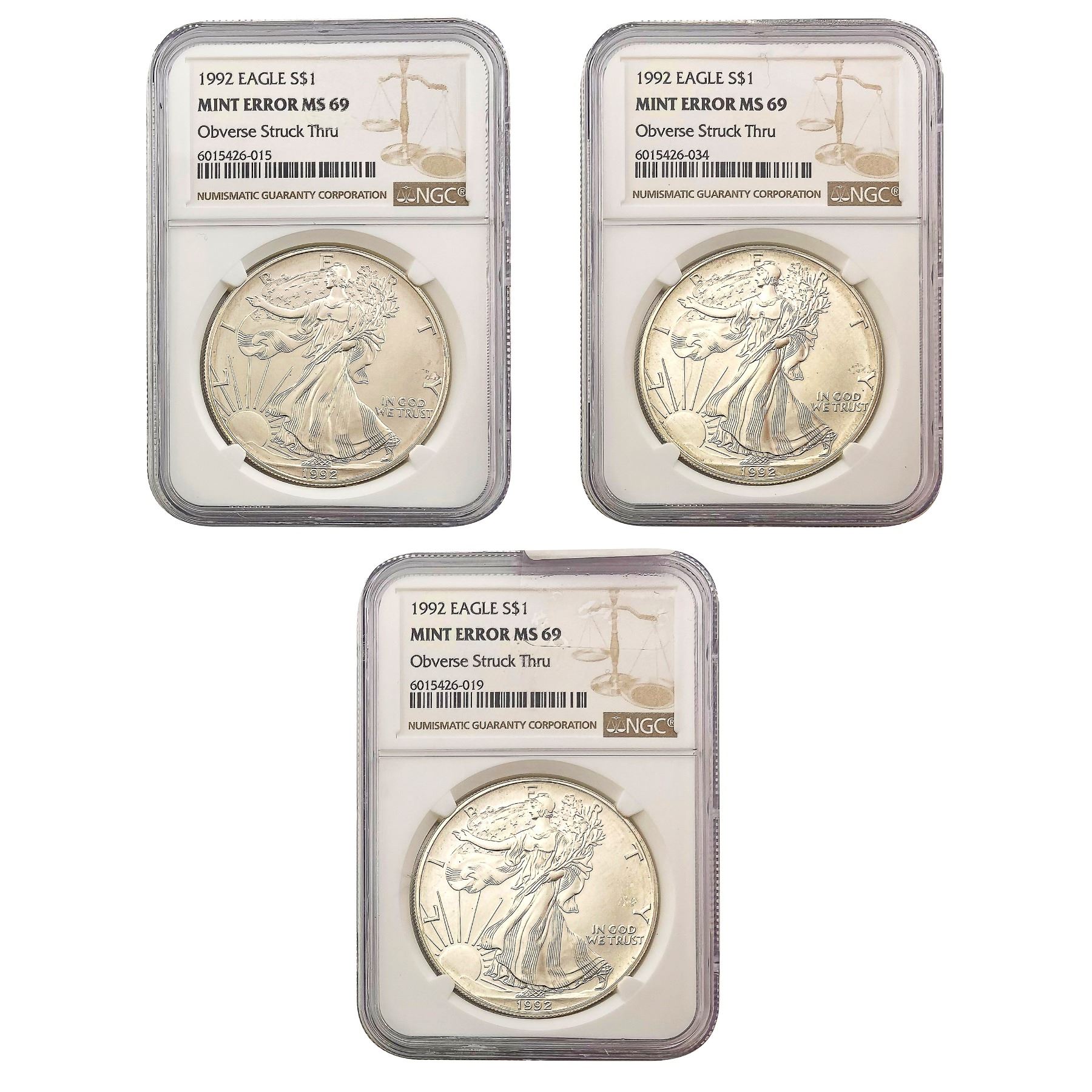 [3] 1992 Silver Eagle NGC/PGA MS69 Mint Error