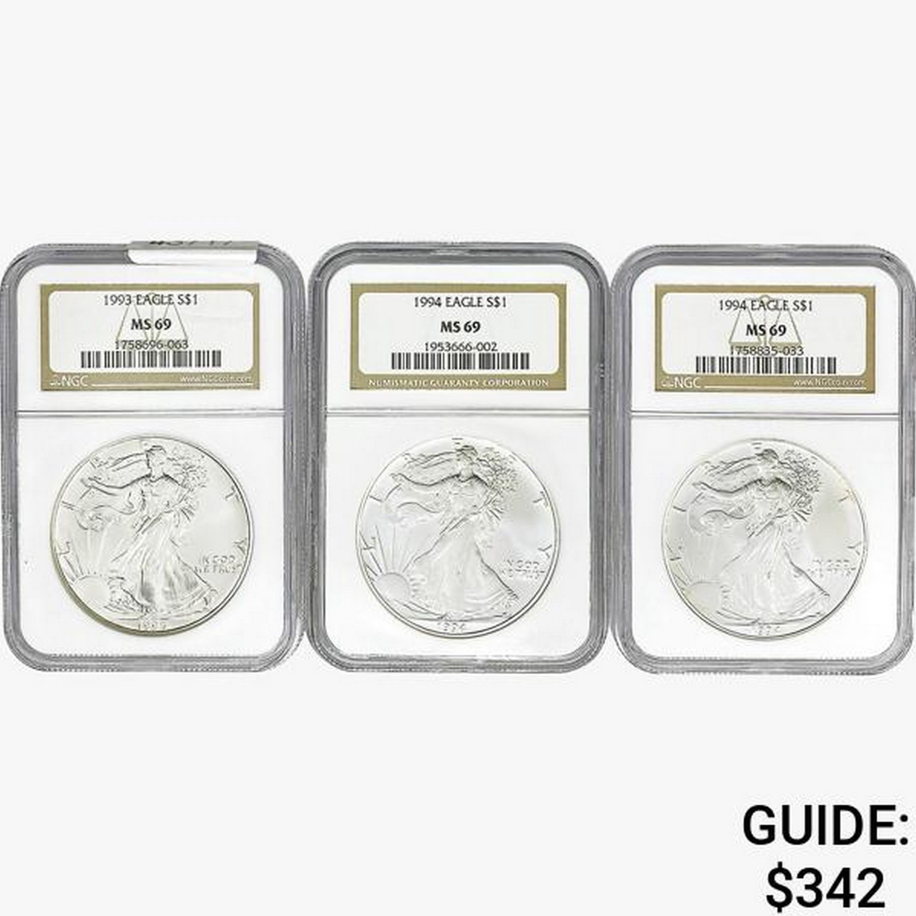 [3]1993-1994 Silver Eagle NGC MS69