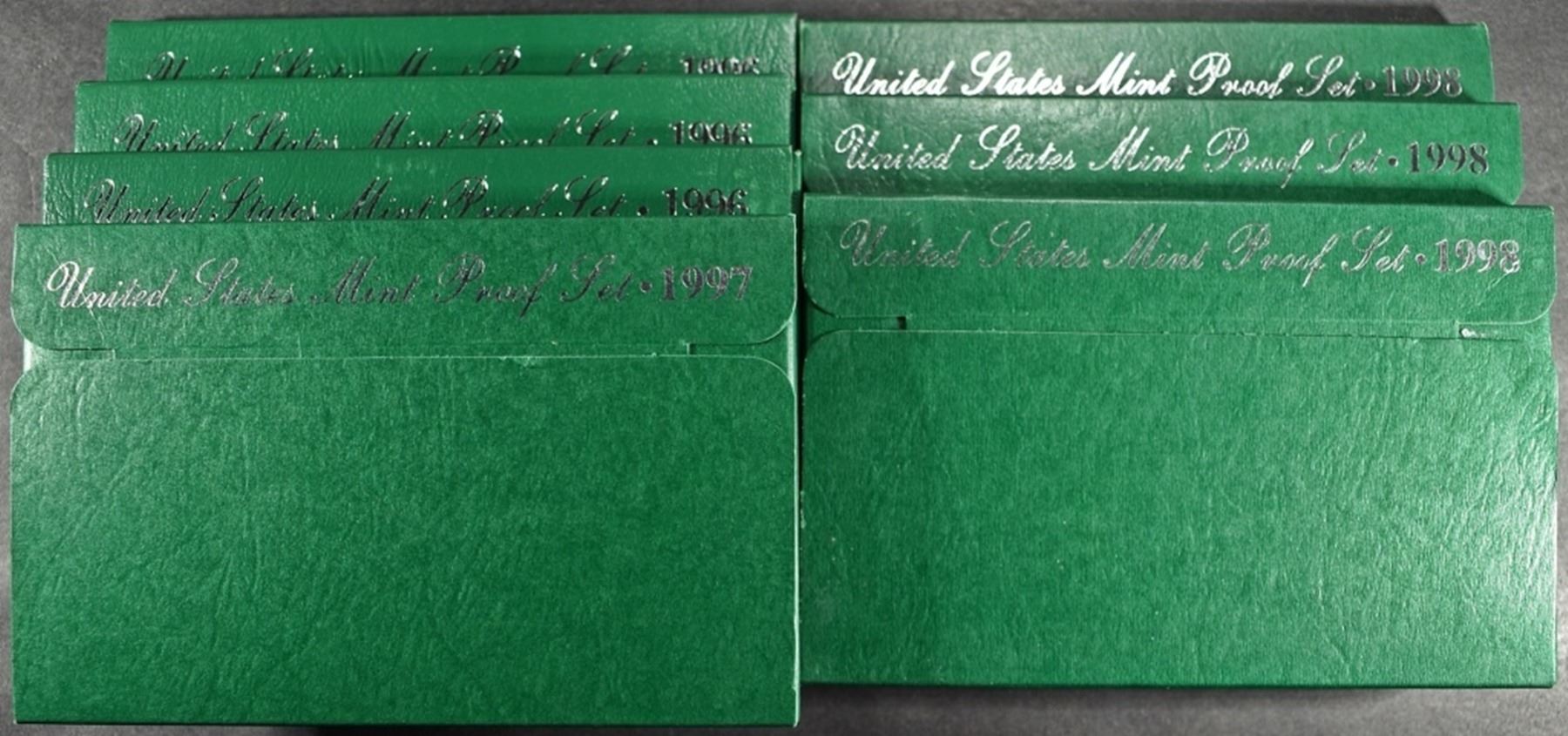 (3) 1996, (1) 1997, (3) 1998 US PROOF SETS