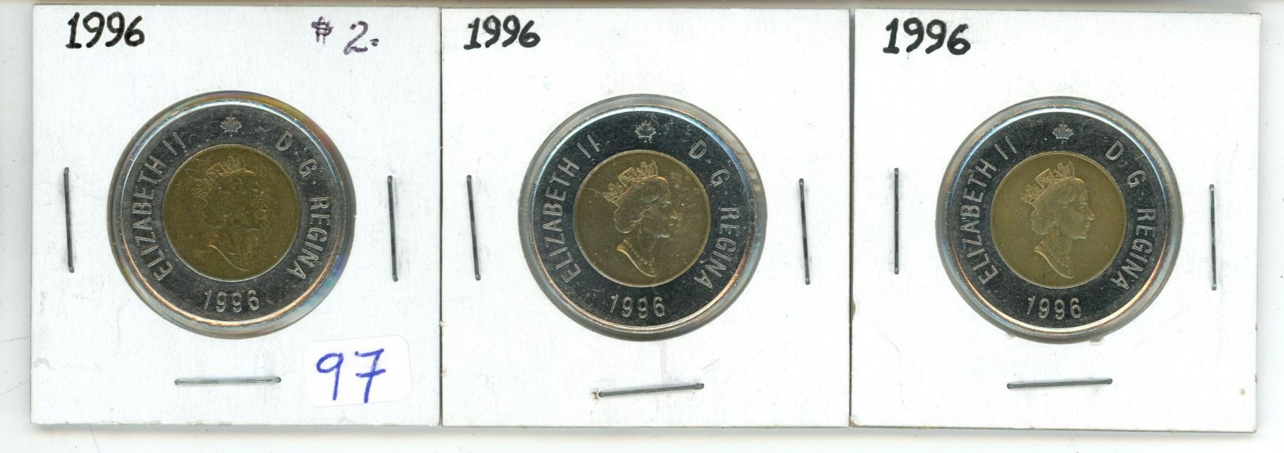 3 - 1996 Canadian 2 dollar toonies