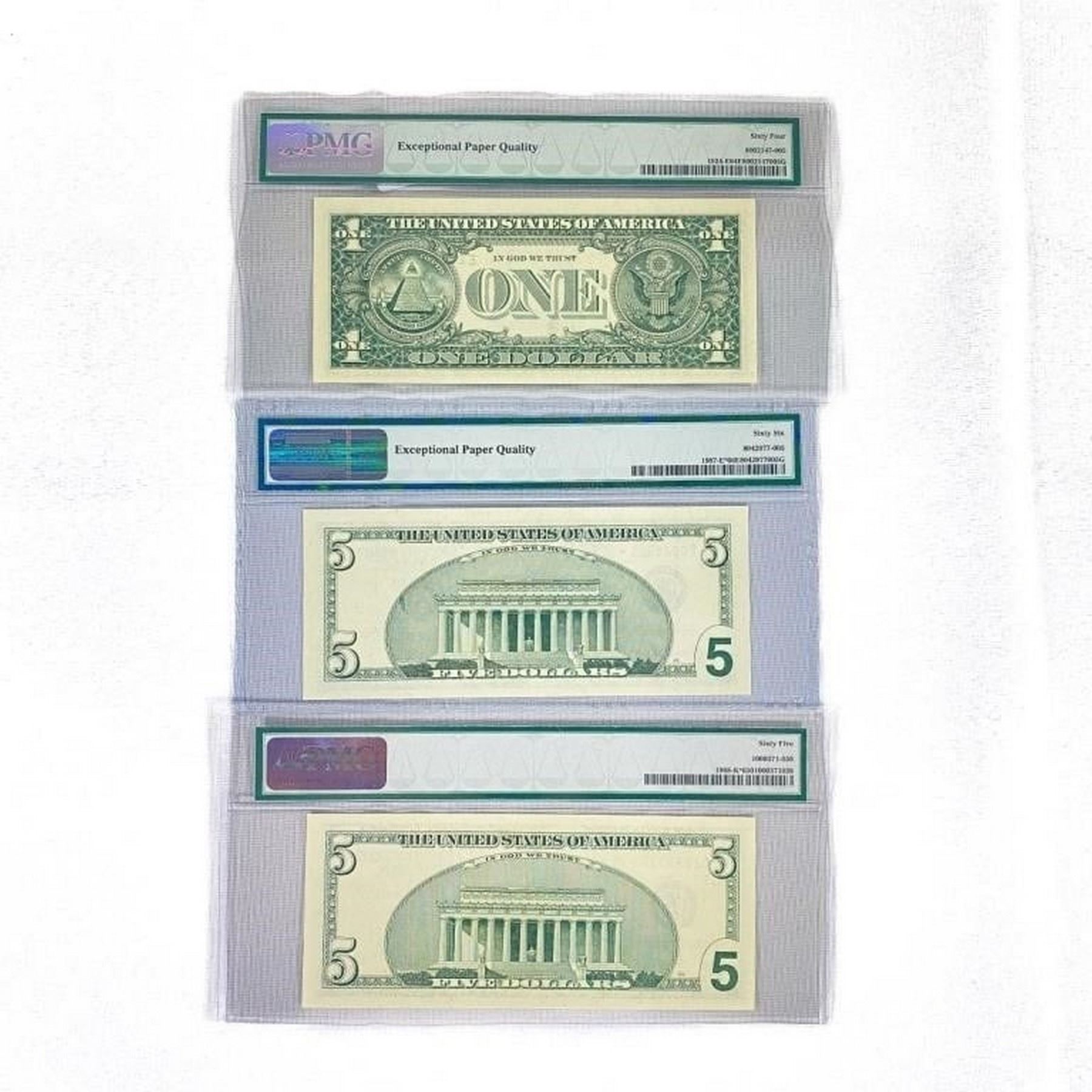 (3) 1999-2001 $1 & $5 Fed Reserve Notes PMG