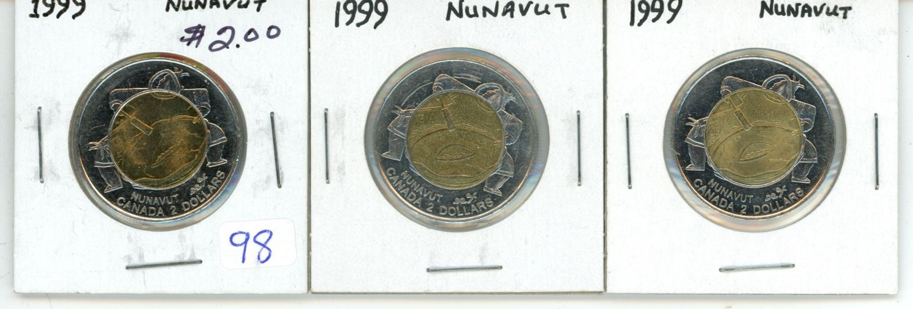 3 - 1999 "Nunavut" Canadian 2 dollar toonies