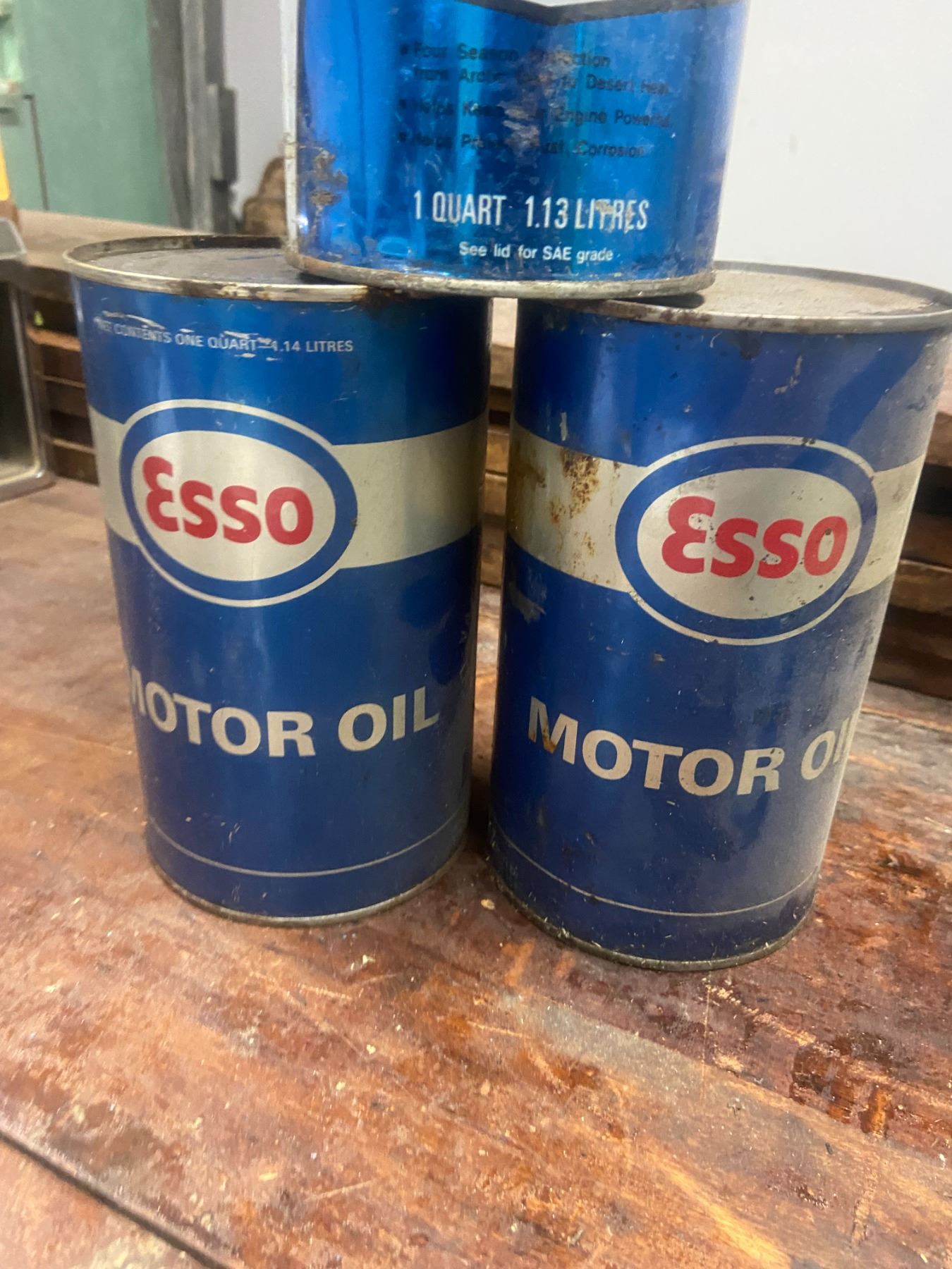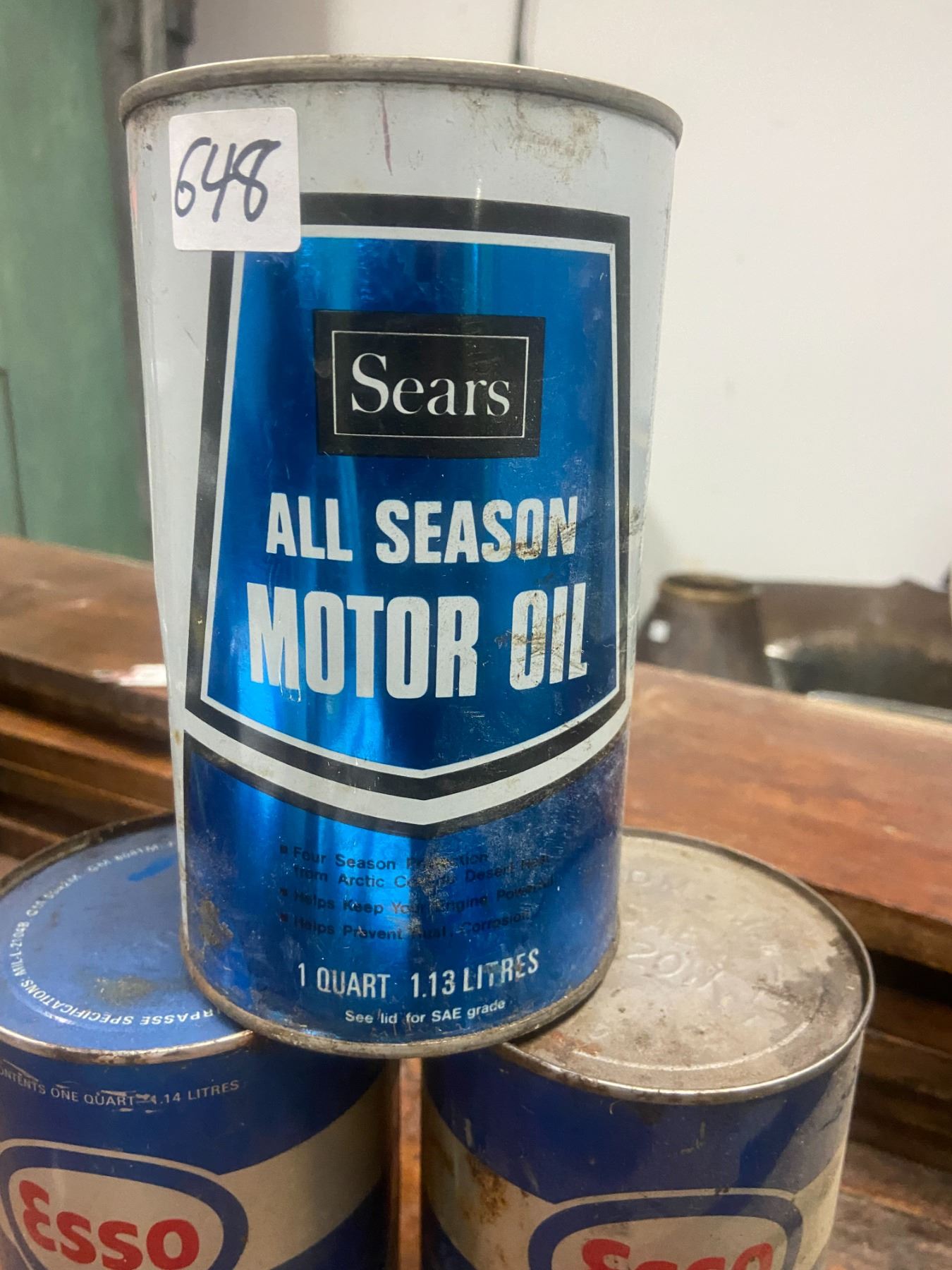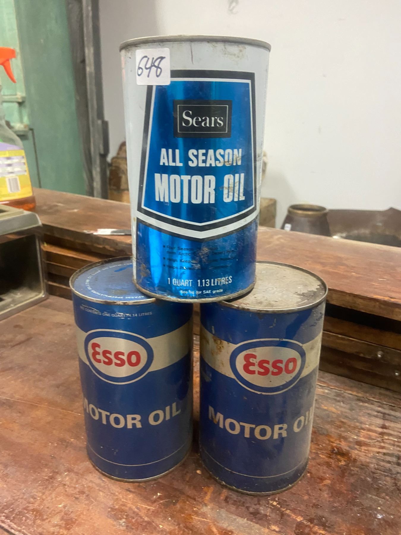 3 1Qt oil tins - 2 Esso, 1 Sears - all are full